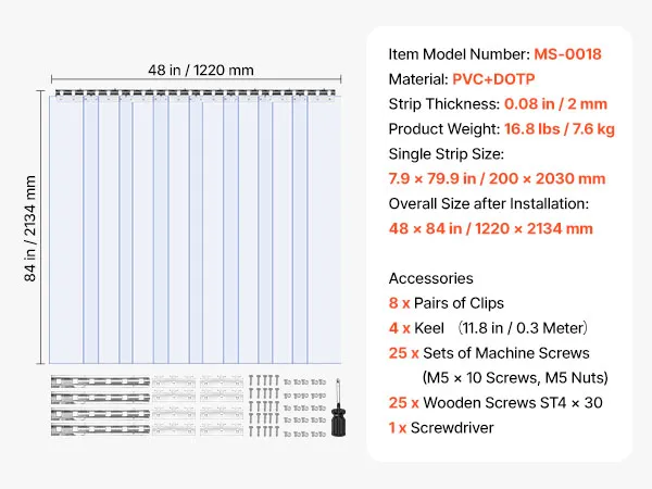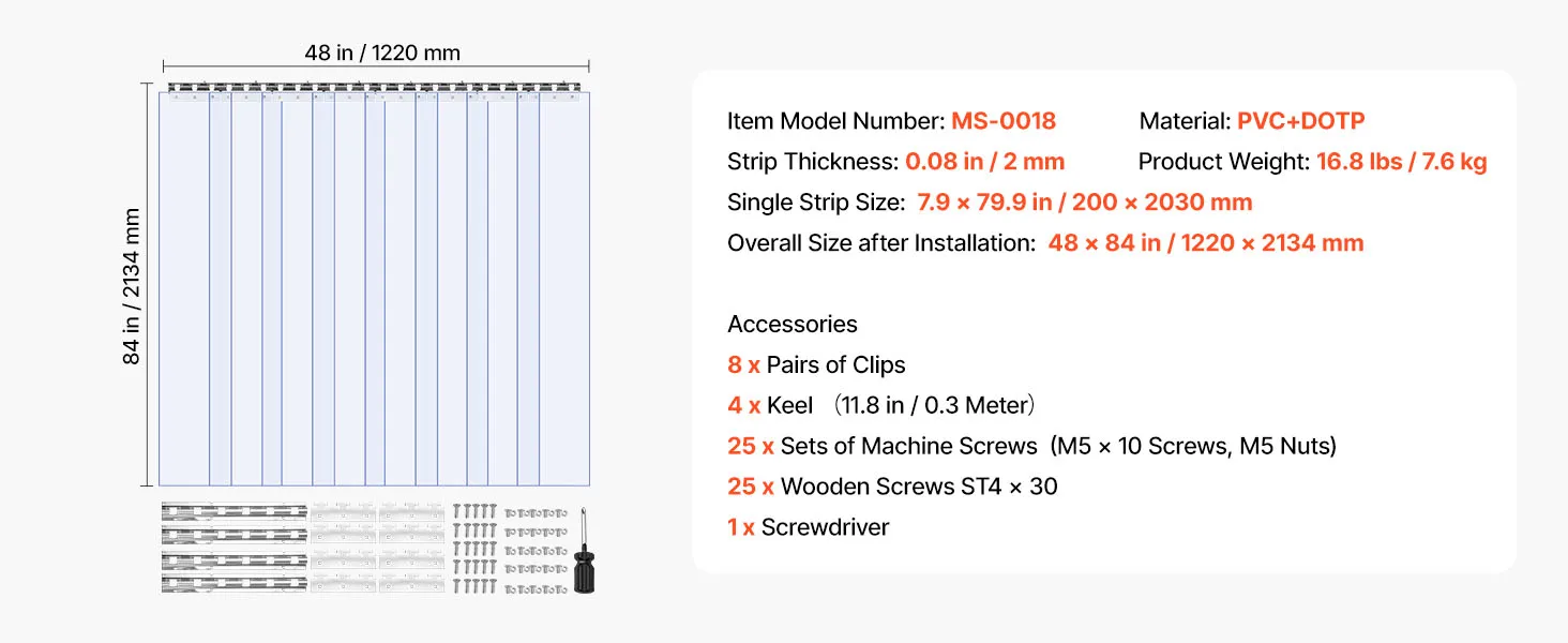 • Excellent Fit: Measuring approximately 84 in long and 48 in wide, this plastic door strip offers full, effective coverage for your doorway. With a sturdy 0.08 in thickness, it’s designed for frequent use without losing its shape or strength