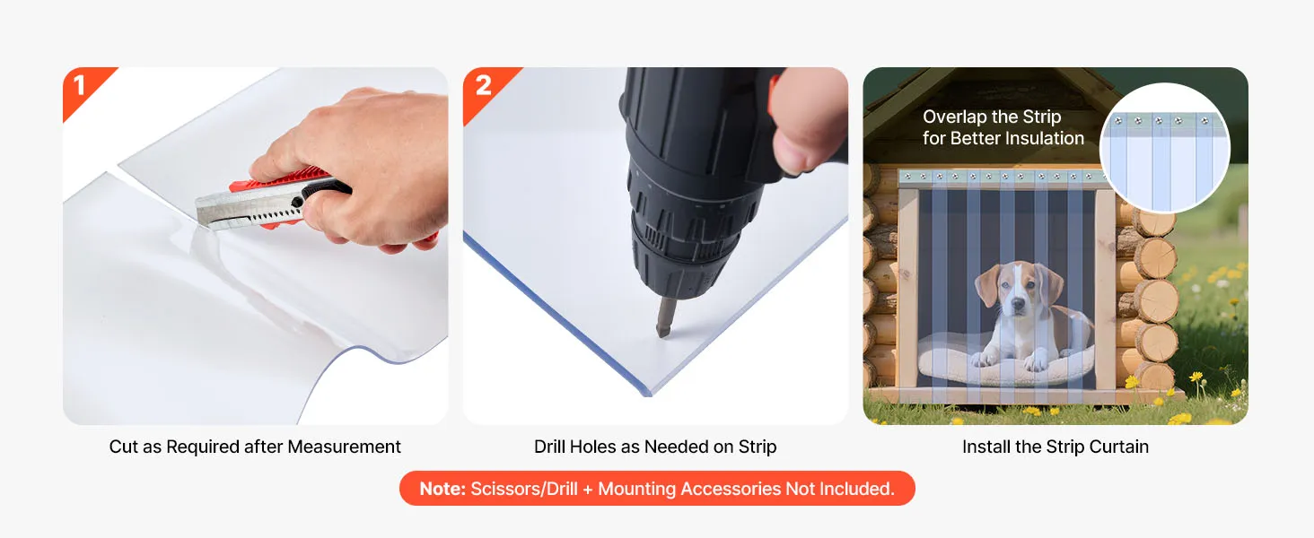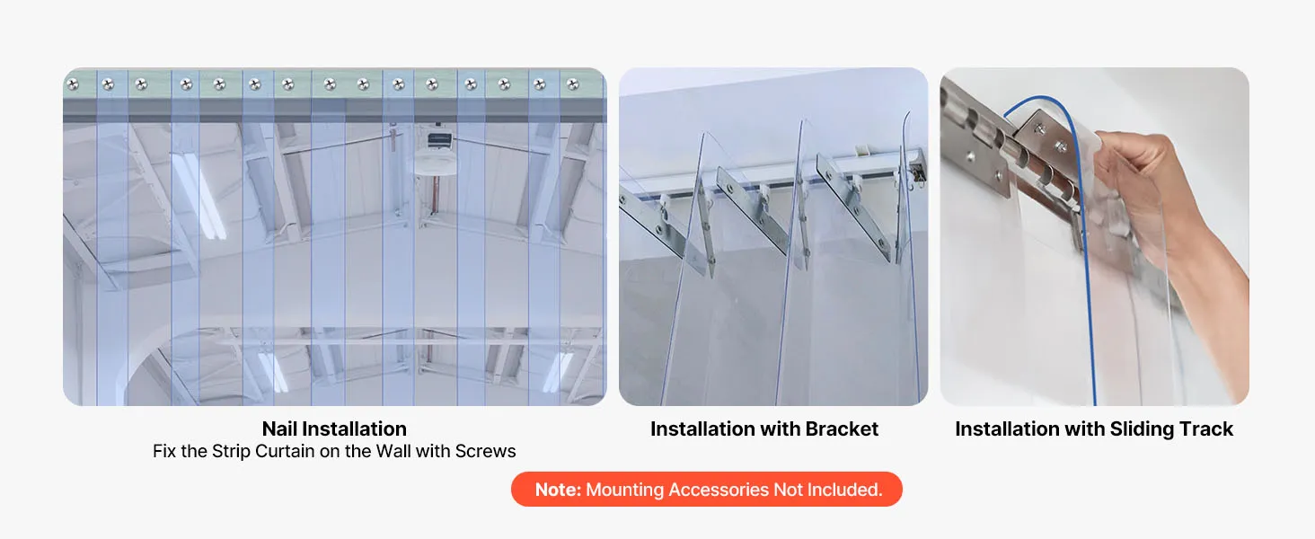 A: Installation is quick and simple. Strips can also be replaced individually without removing the entire curtain.