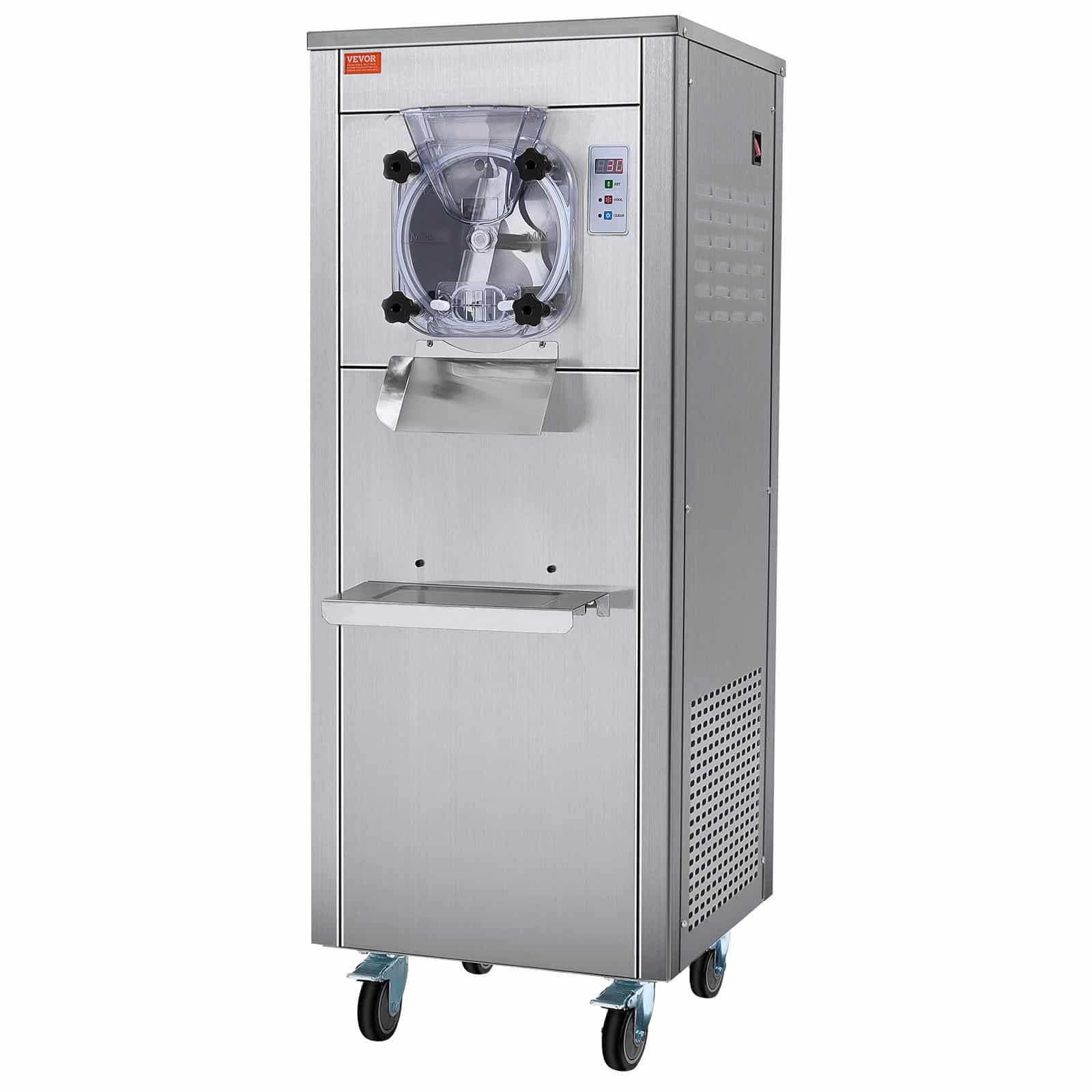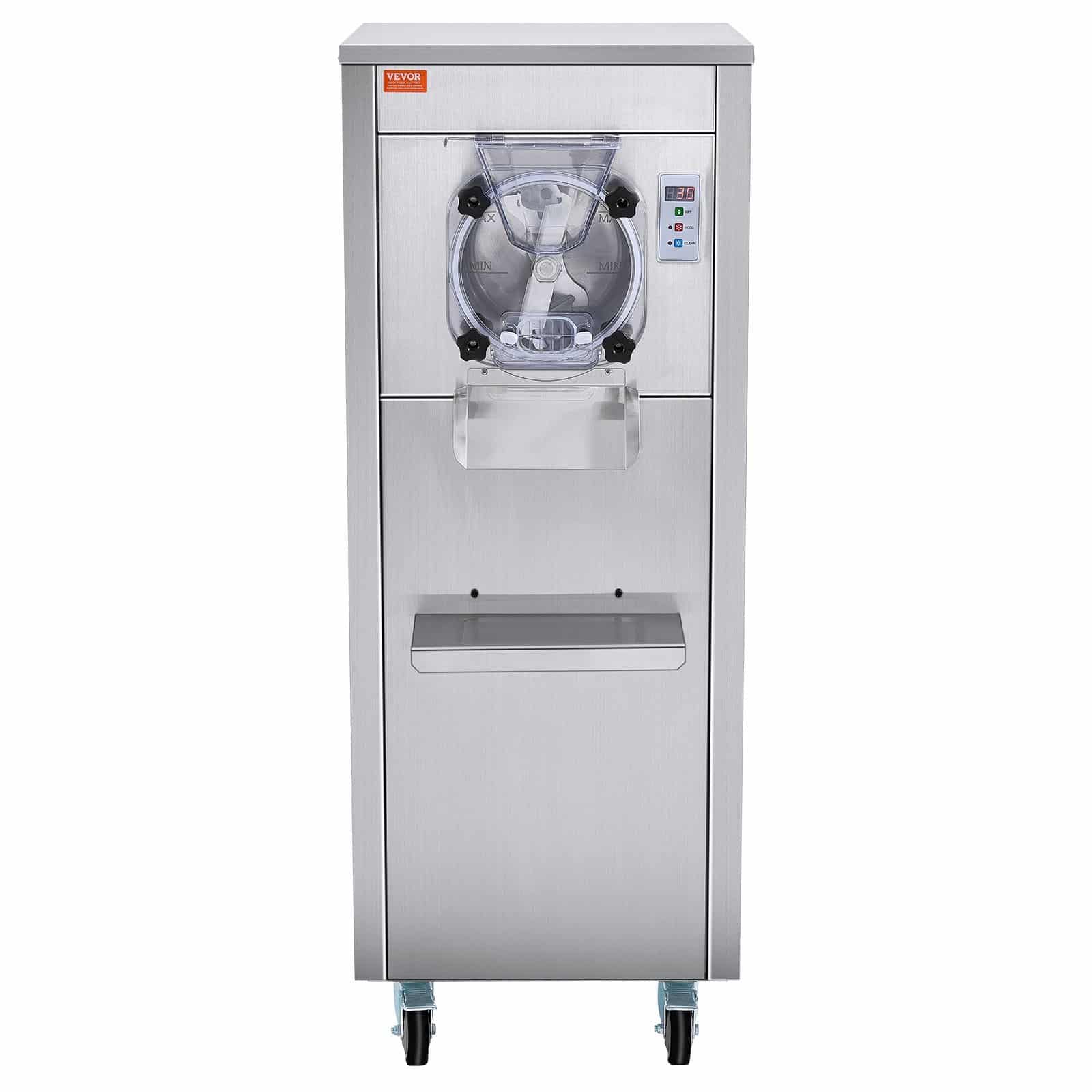 VEVOR Commercial Ice Cream Machine, 18 L/H Yield, 1600W Single Flavor Hard Serve Ice Cream Maker with Wheels, 6L Stainless Steel Cylinder, LED Panel Auto Clean Pre-cooling, for Restaurant Snack Bars