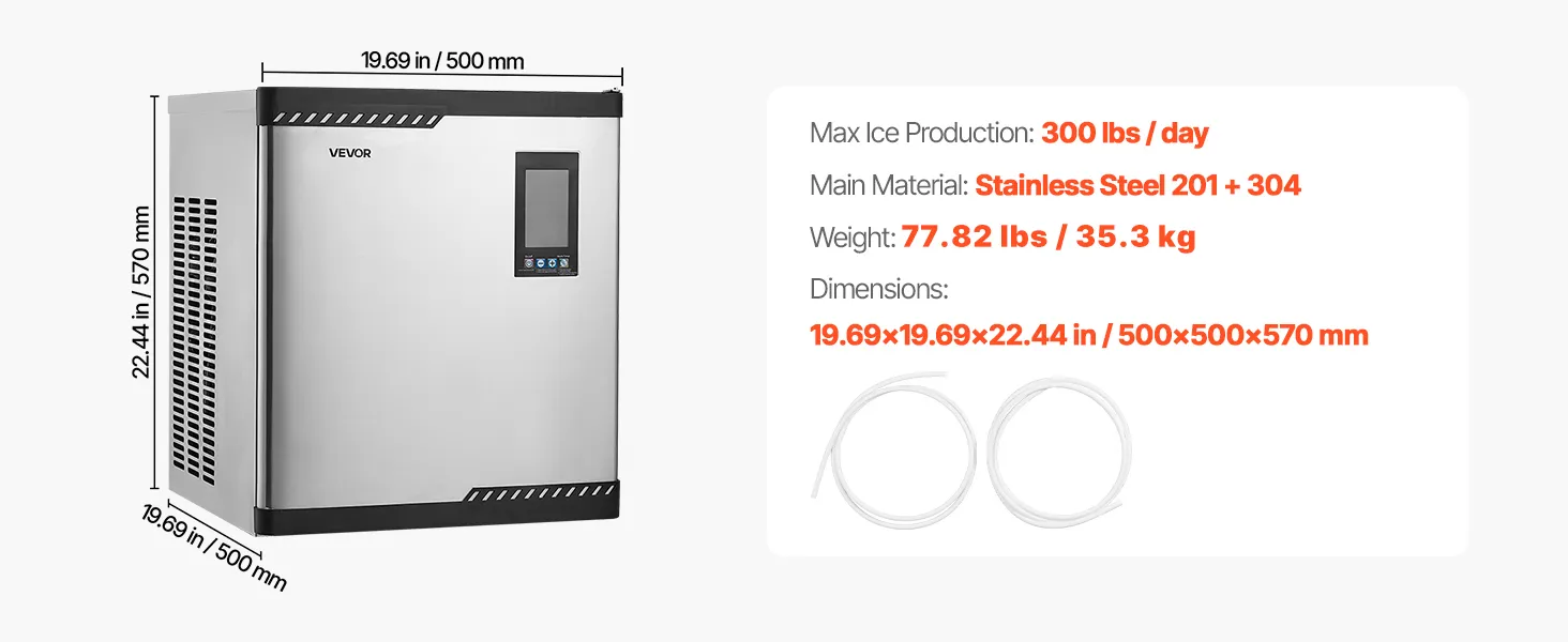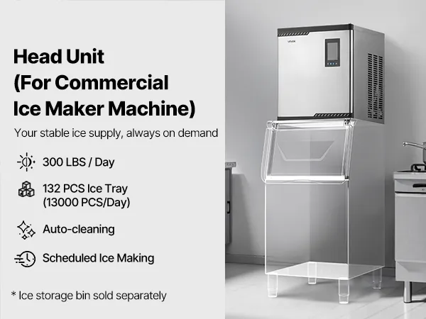 VEVOR Commercial Ice Maker Machine - Head, 136 kg/Day Stainless Steel Ice Machine with Scheduled Ice-Making, Self-Cleaning, Adjustable Thickness, Ideal for Restaurant Bar Cafe Hotel - Head Only