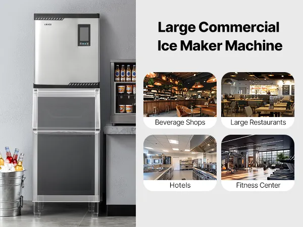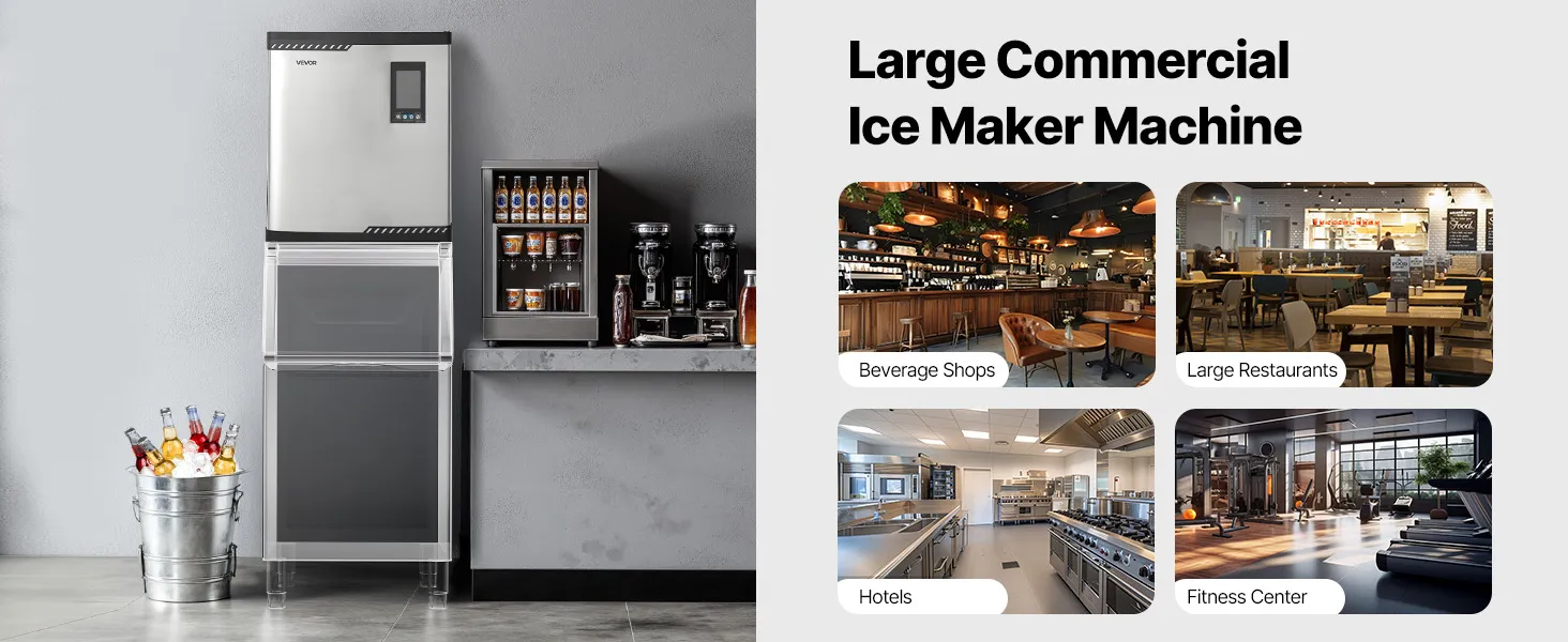 Машина для производства кубиков льда обеспечивает большую производительность льда, что делает ее идеальной для коммерческих кухонь, ресторанов, баров, гостиниц и магазинов напитков.