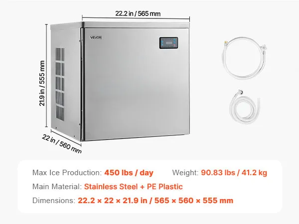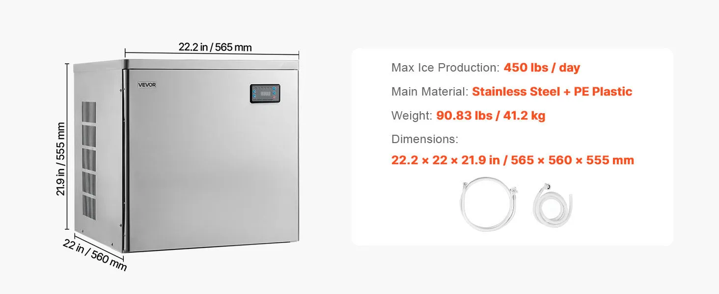 VEVOR Commercial Ice Maker Machine - Head, 204 kg/Day Stainless Steel Ice Machine with Scheduled Ice-Making, Self-Cleaning, Adjustable Thickness, Ideal for Restaurant Bar Cafe Hotel - Head Only