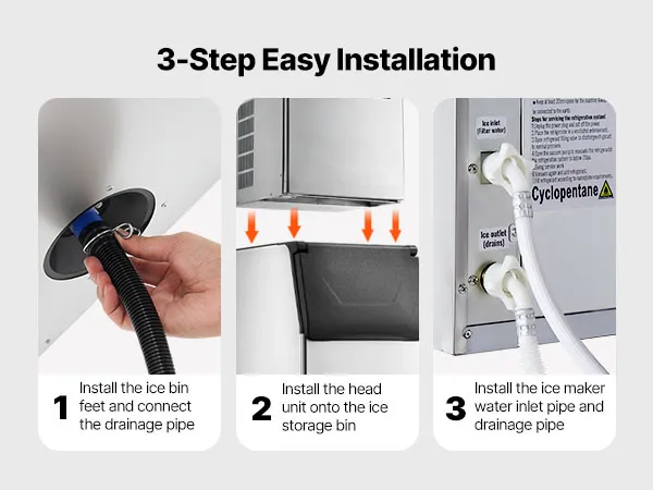 Льдогенератор прост в установке, а конструкция самотечного дренажа обеспечивает быстрый и эффективный слив воды.