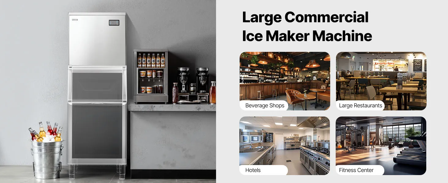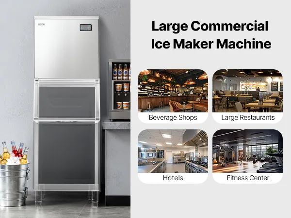 Машина для производства кубиков льда обеспечивает большую производительность льда, что делает ее идеальной для коммерческих кухонь, ресторанов, баров, гостиниц и магазинов напитков.