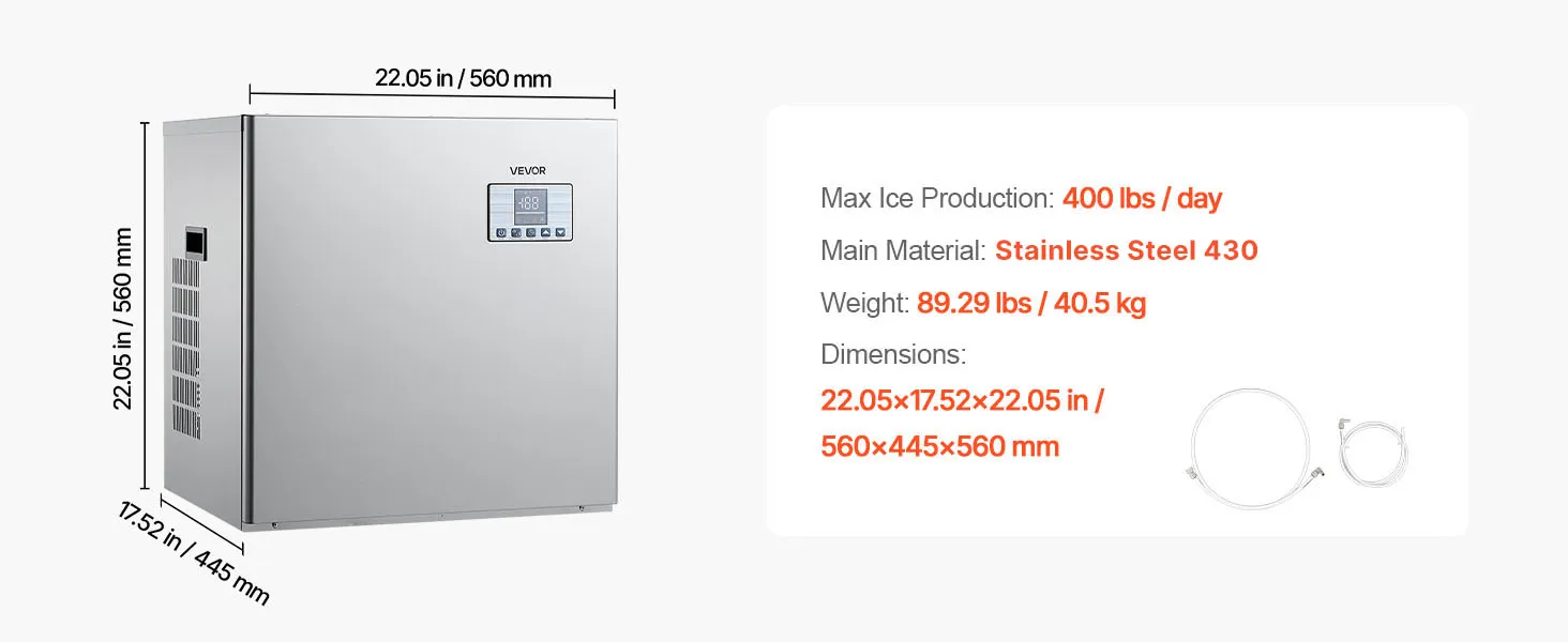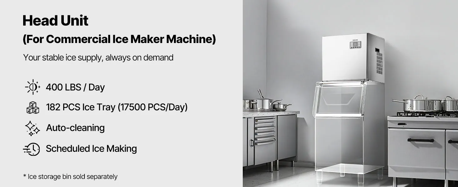 VEVOR Commercial Ice Maker Machine - Head, 181 kg/Day Stainless Steel Ice Machine with Scheduled Ice-Making, Self-Cleaning, Adjustable Thickness, Ideal for Restaurant Bar Cafe Hotel - Head Only