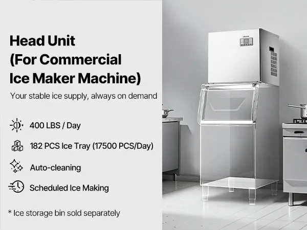 This commercial ice maker head delivers a continuous supply of ice, equipped with an intelligent control panel for simple operation and convenient scheduling. Its one-touch self-cleaning function ensures easy maintenance and hygienic ice production, making it ideal for restaurants, bars, hotels, cafés, and other commercial settings.