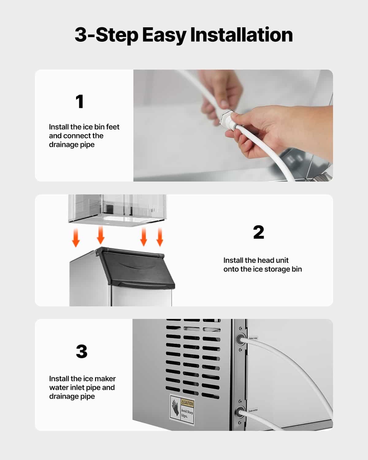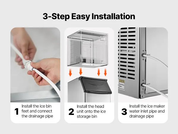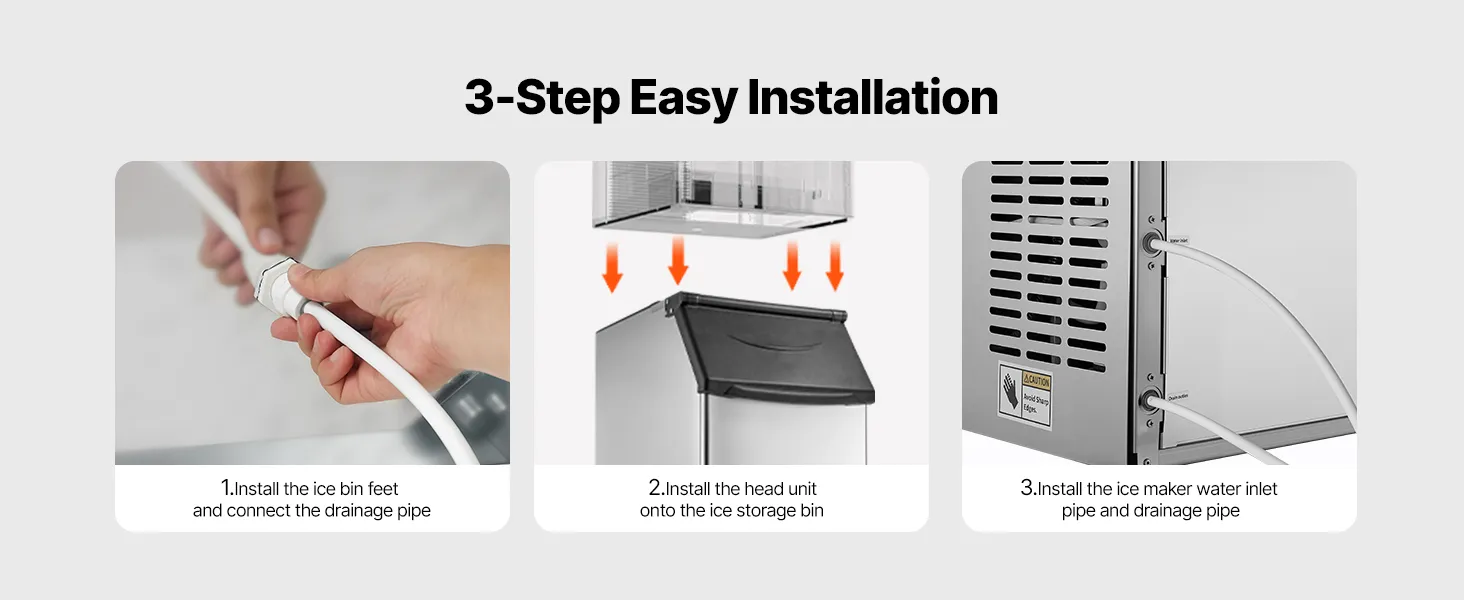 The commercial ice storage bin is easy to install in just 3 simple steps. Quickly set up your ice maker and start making ice.