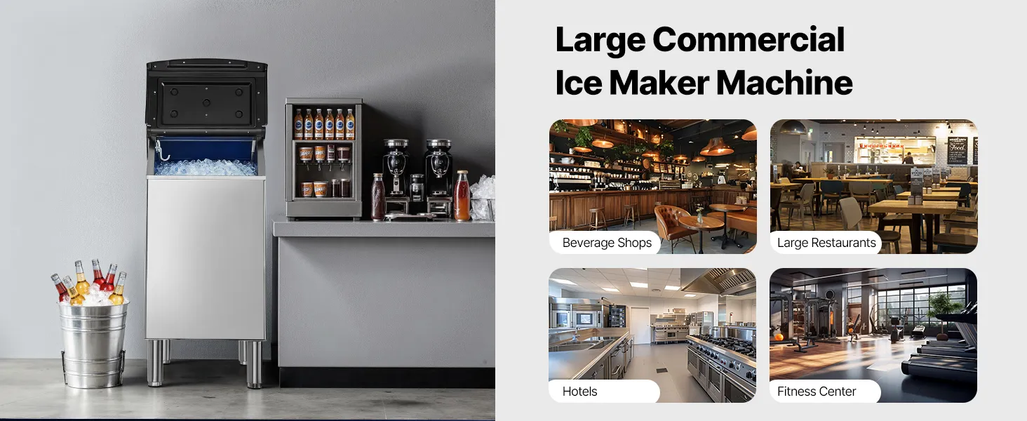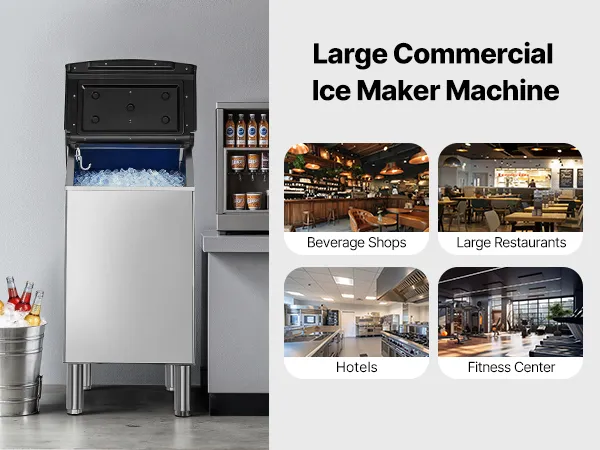 Машина для производства кубиков льда обеспечивает большую производительность льда, что делает ее идеальной для коммерческих кухонь, ресторанов, баров, гостиниц и магазинов напитков.