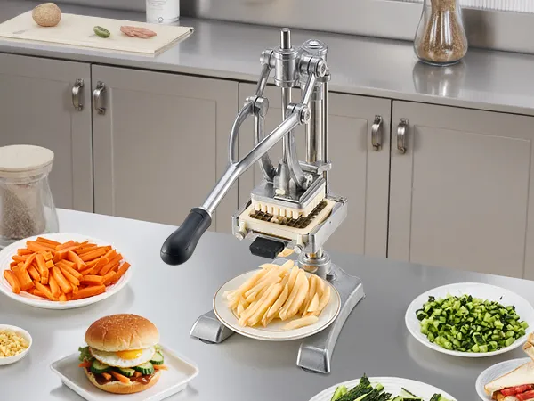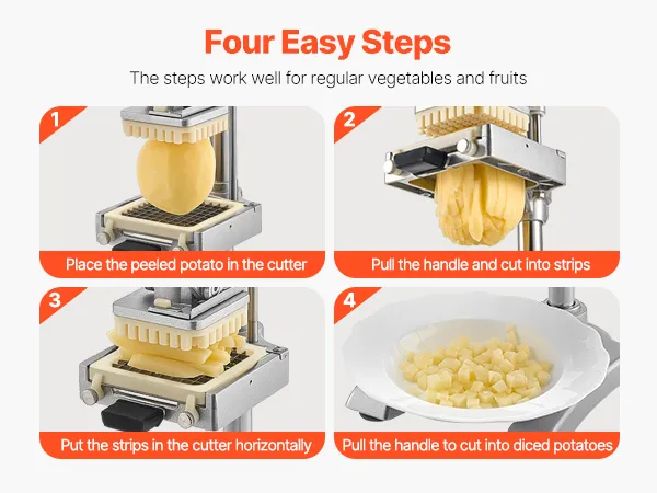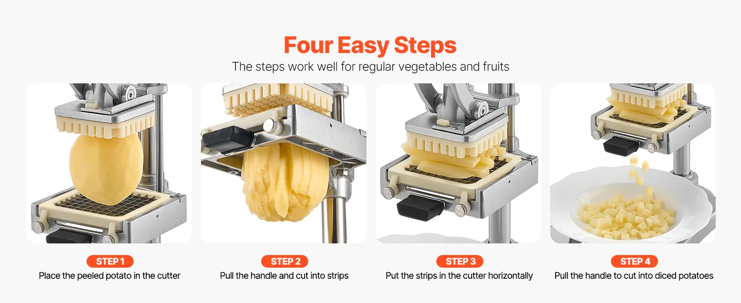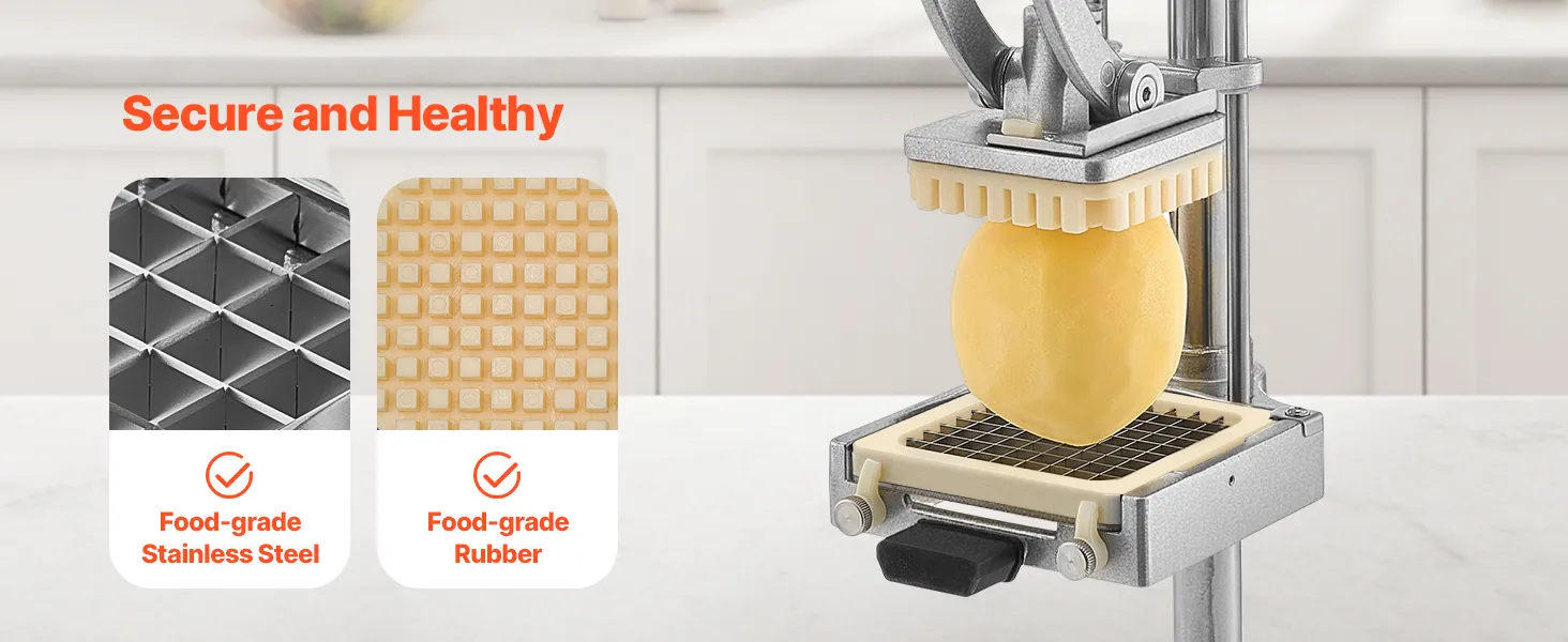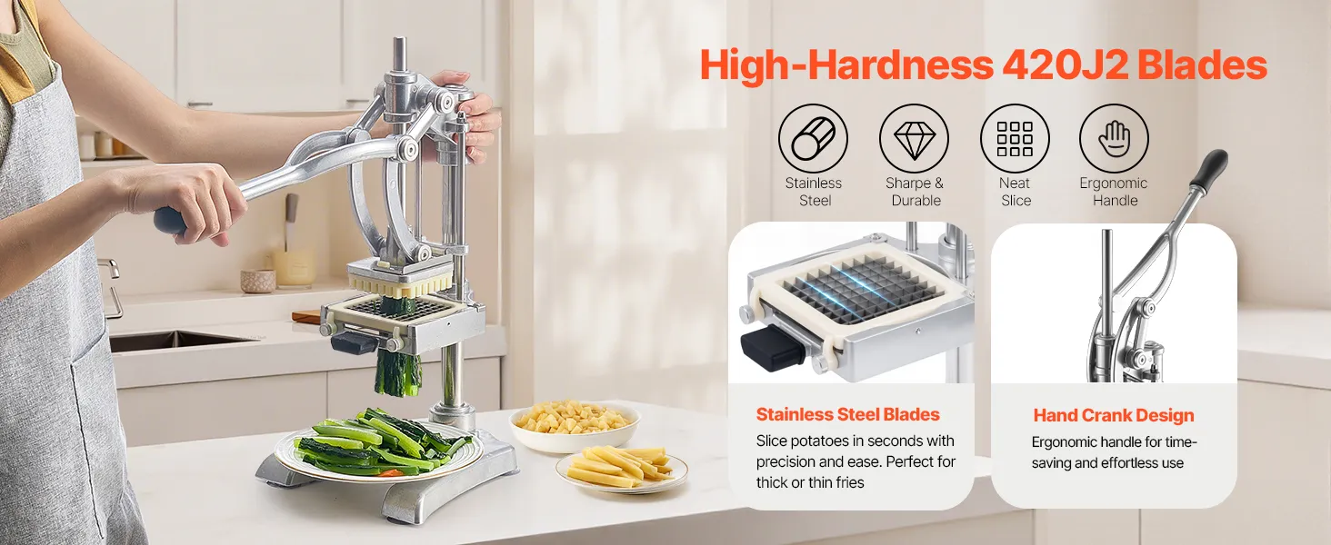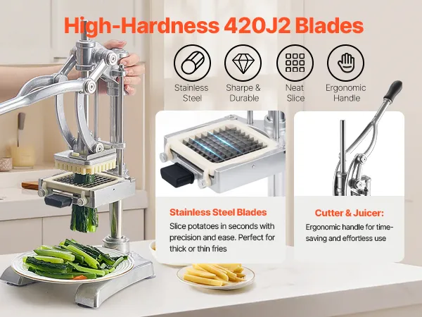 VEVOR Commercial French Fry Cutter, Stainless Steel Vegetable Fruit Chopper with 3 Replacement Blades 12.7mm 9.5mm 6.4mm, and a Juicing Blade, Manual Potato Slicer Dicer for Restaurants & Home Kitchen