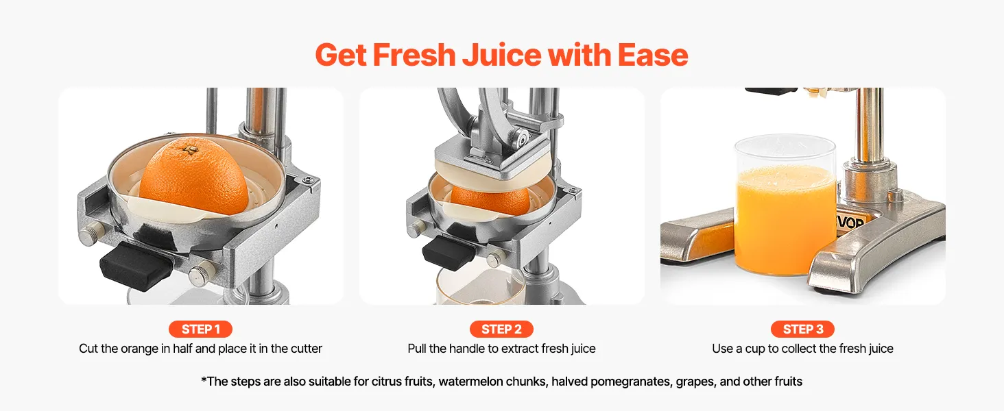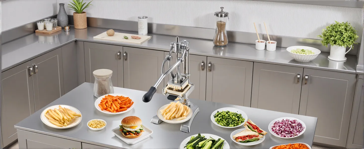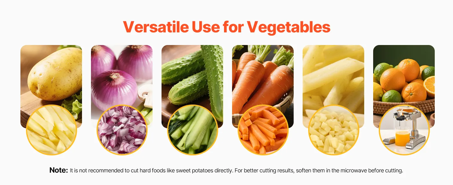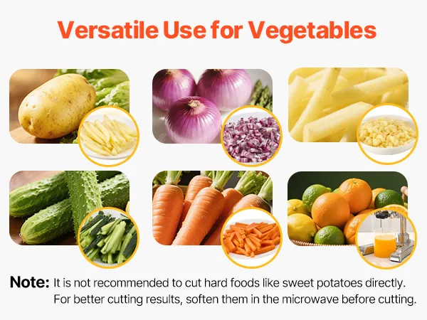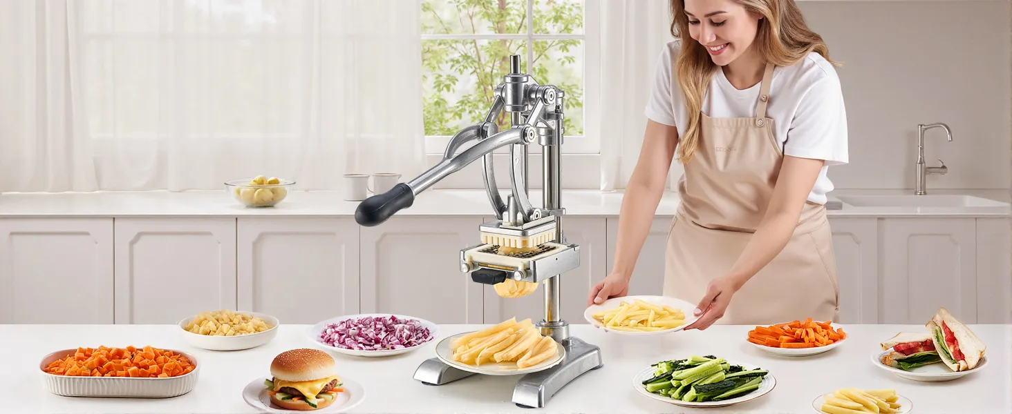 VEVOR Commercial French Fry Cutter, Stainless Steel Vegetable Fruit Chopper with 3 Replacement Blades 12.7mm 9.5mm 6.4mm, and a Juicing Blade, Manual Potato Slicer Dicer for Restaurants & Home Kitchen