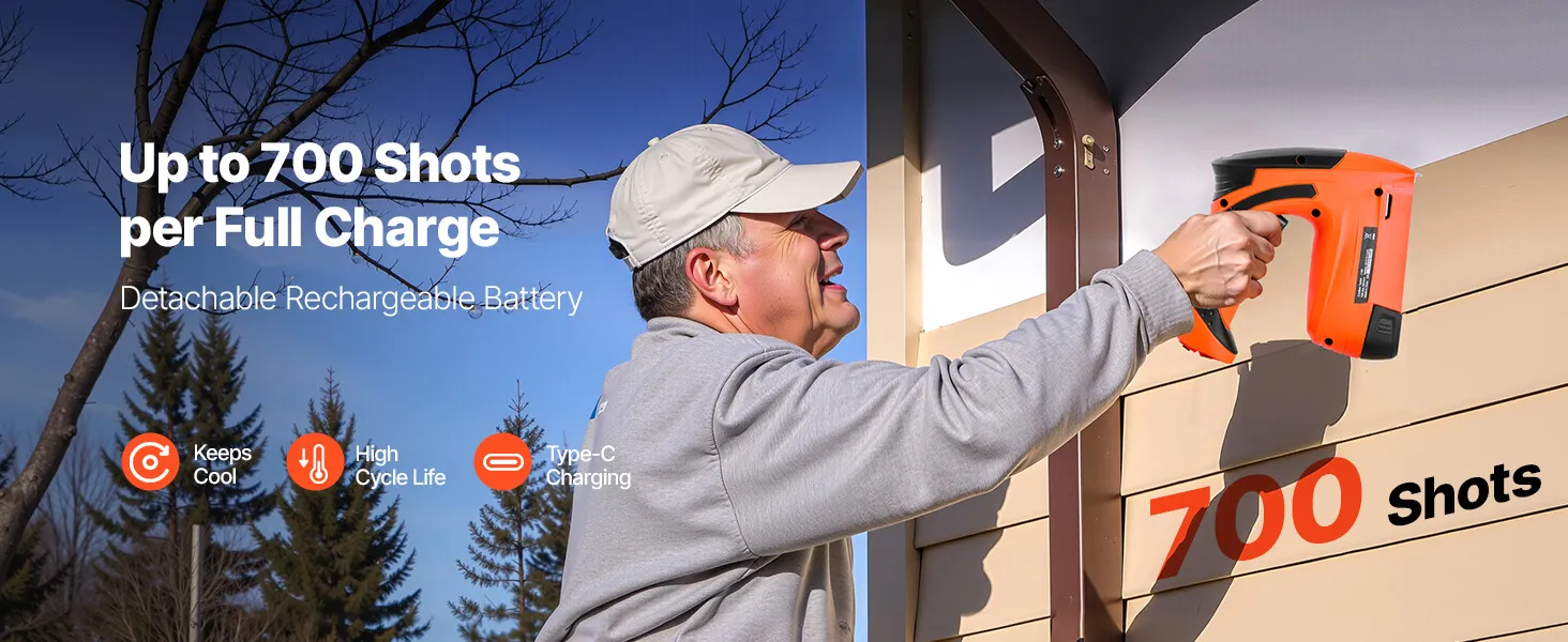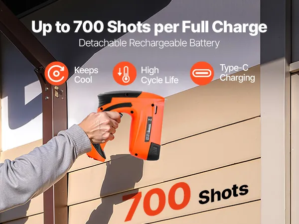 • Long-Lasting Battery: This cordless staple gun features a high-capacity battery that can fire up to 700 nails on a full charge. Work confidently with the Type-C port, enjoying both extended runtime and cordless portability