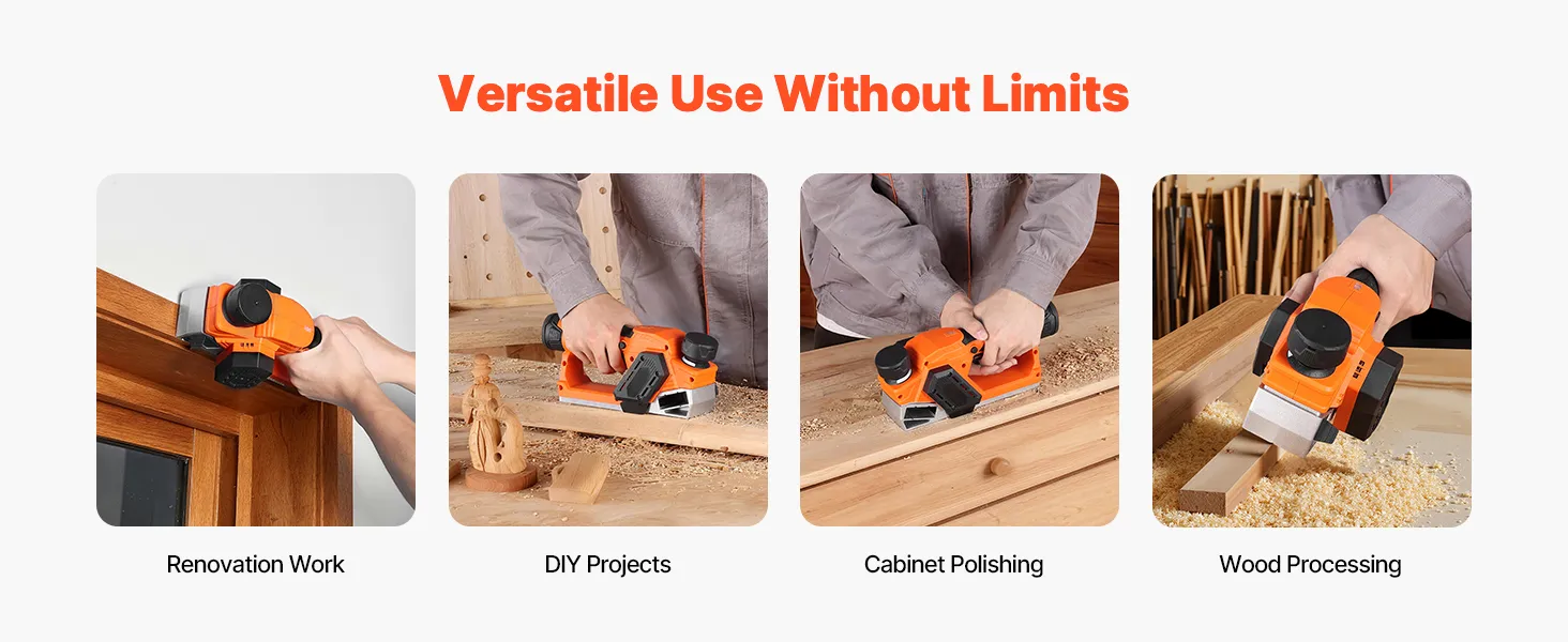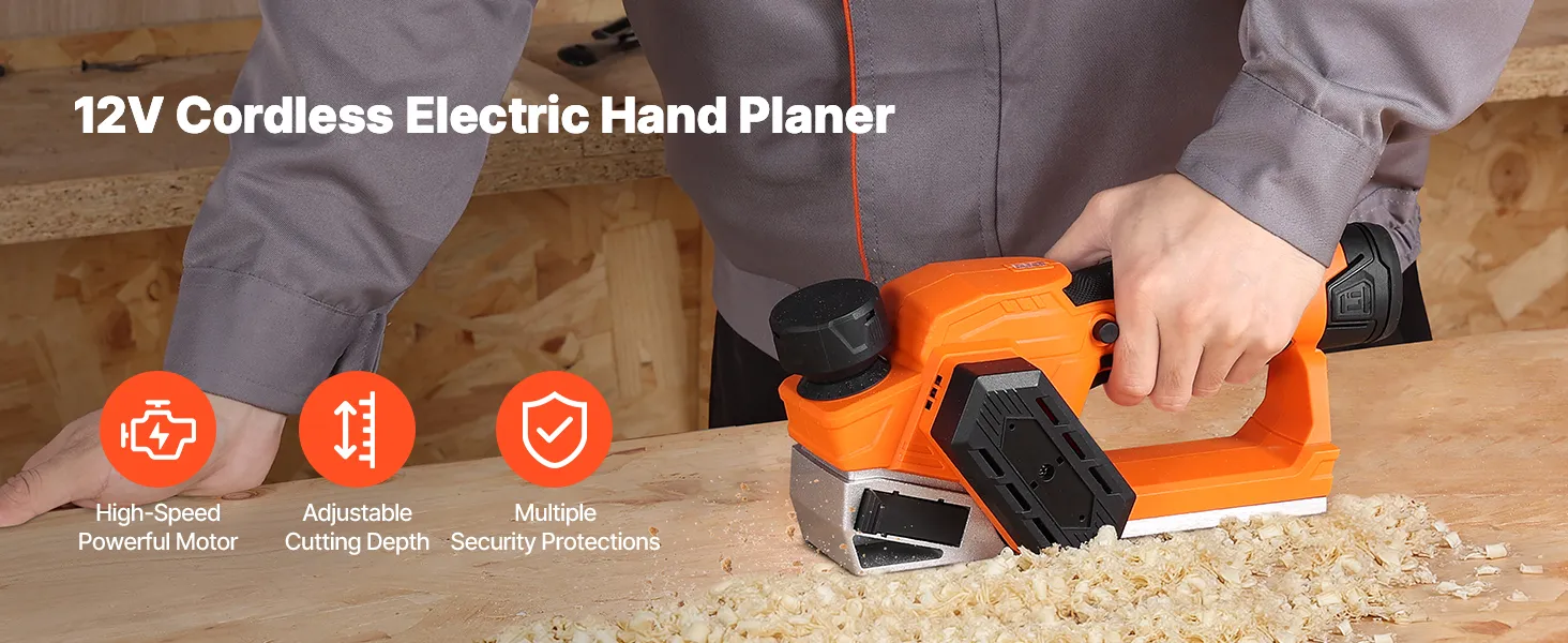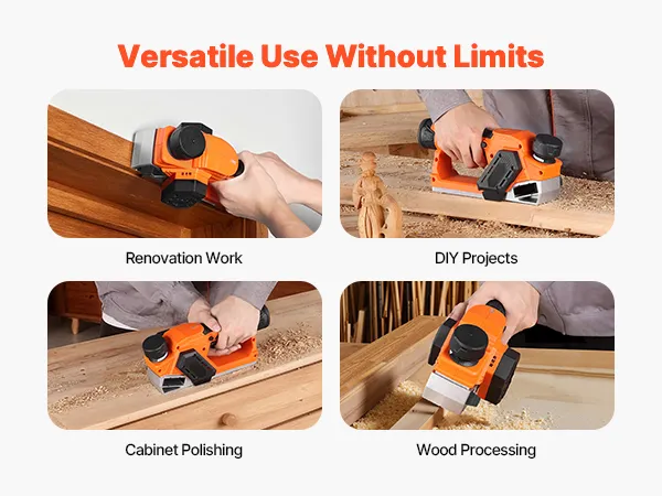 Powered by a high-speed motor with built-in protection, this cordless handheld planer handles various wood processing tasks with ease, saving both time and effort.