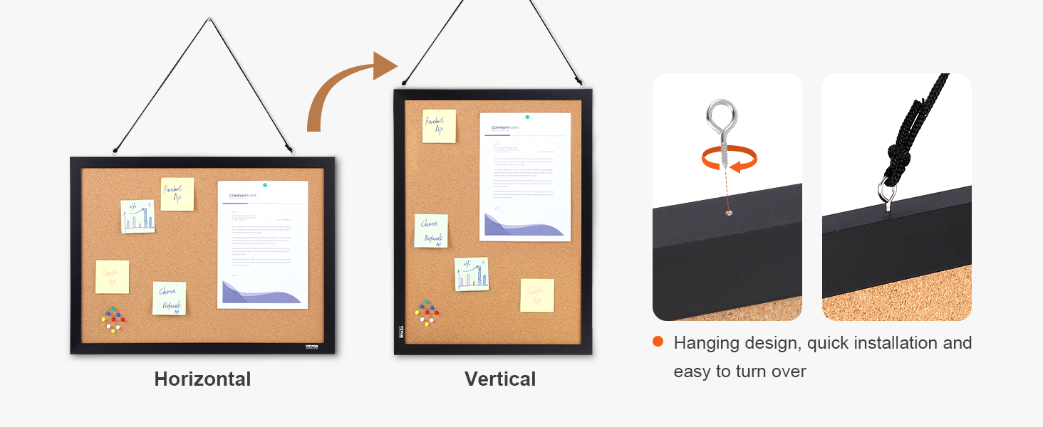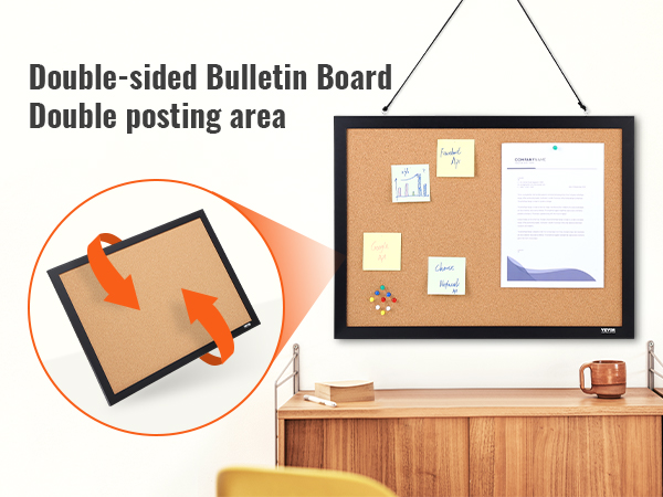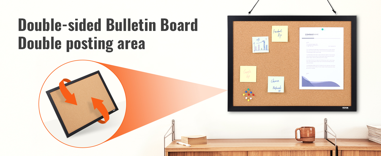 Благодаря двустороннему дизайну доска объявлений VEVOR обеспечивает вдвое больше места для демонстрации ваших сообщений, фотографий и заметок. Поверхность пробки высокой плотности легко поддается накалыванию и обладает высокой способностью к самовосстановлению, что гарантирует отсутствие неприглядных отверстий. Идеально подходит для использования в офисах и дома.