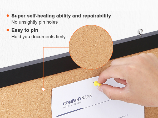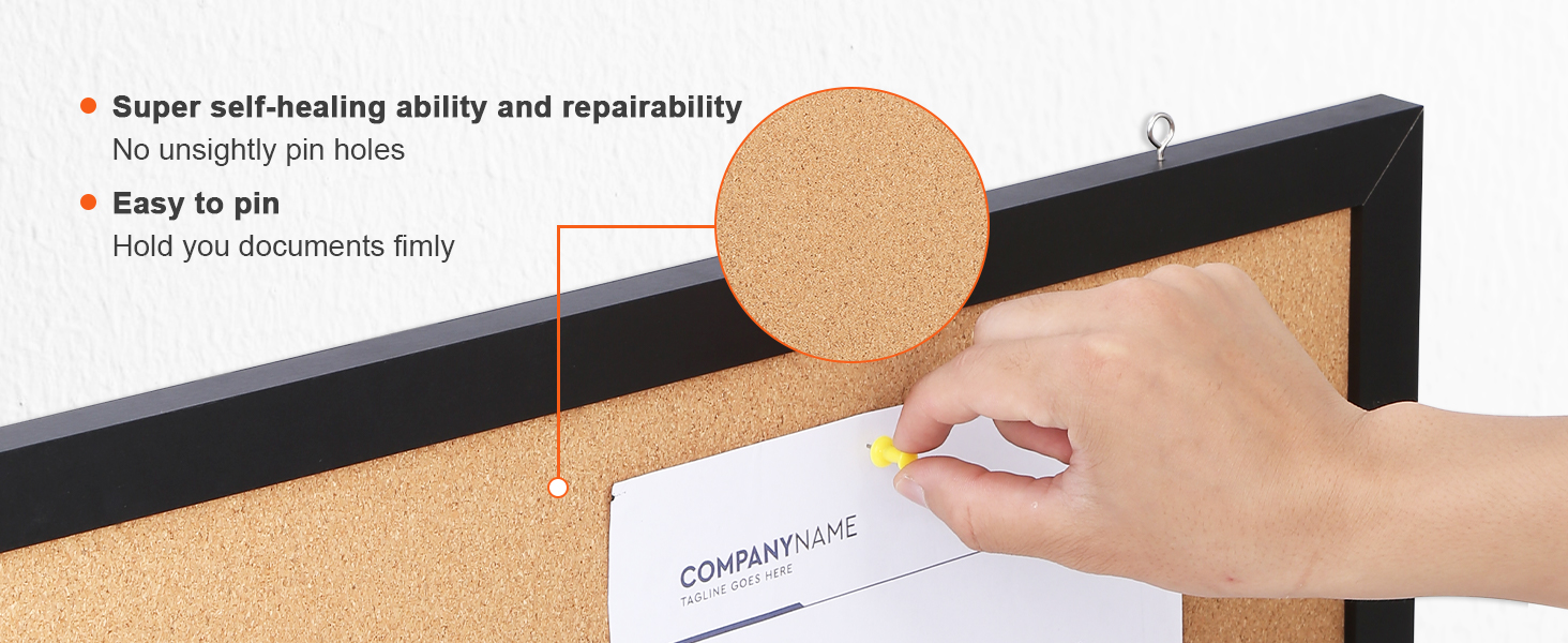 Наша высококачественная поверхность из пробки высокой плотности обеспечивает легкое закрепление, а ее сильная способность к самовосстановлению гарантирует отсутствие неприглядных отверстий для булавок даже после длительного использования.