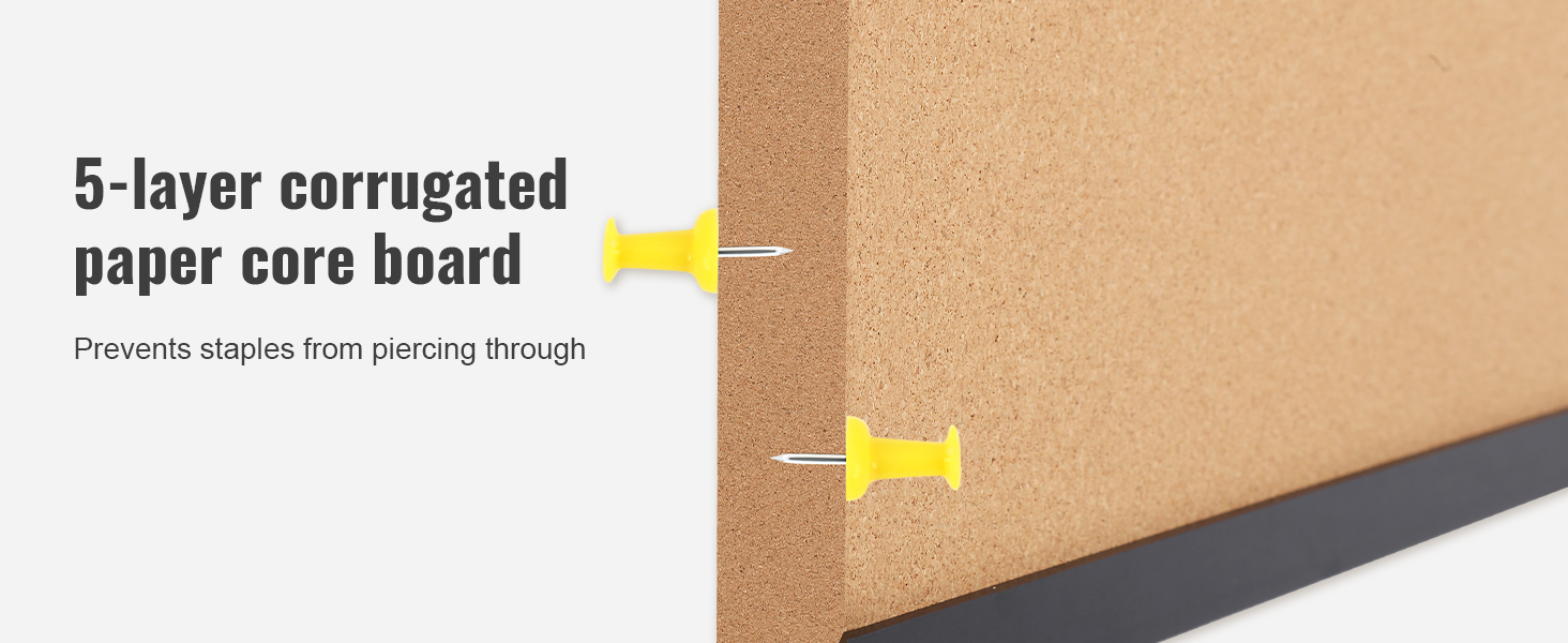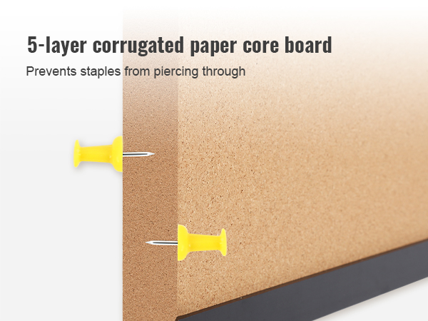 The cork board's five layers of corrugated core provide exceptional sturdiness, making it highly resistant to piercing.