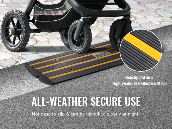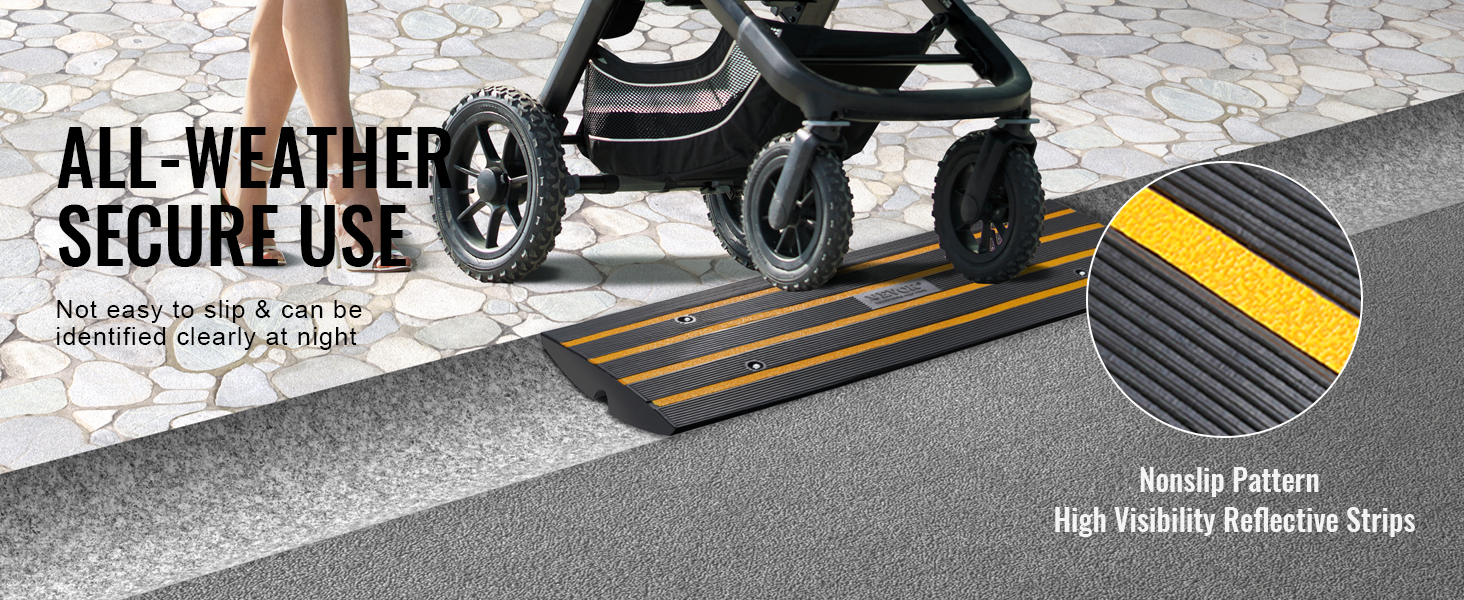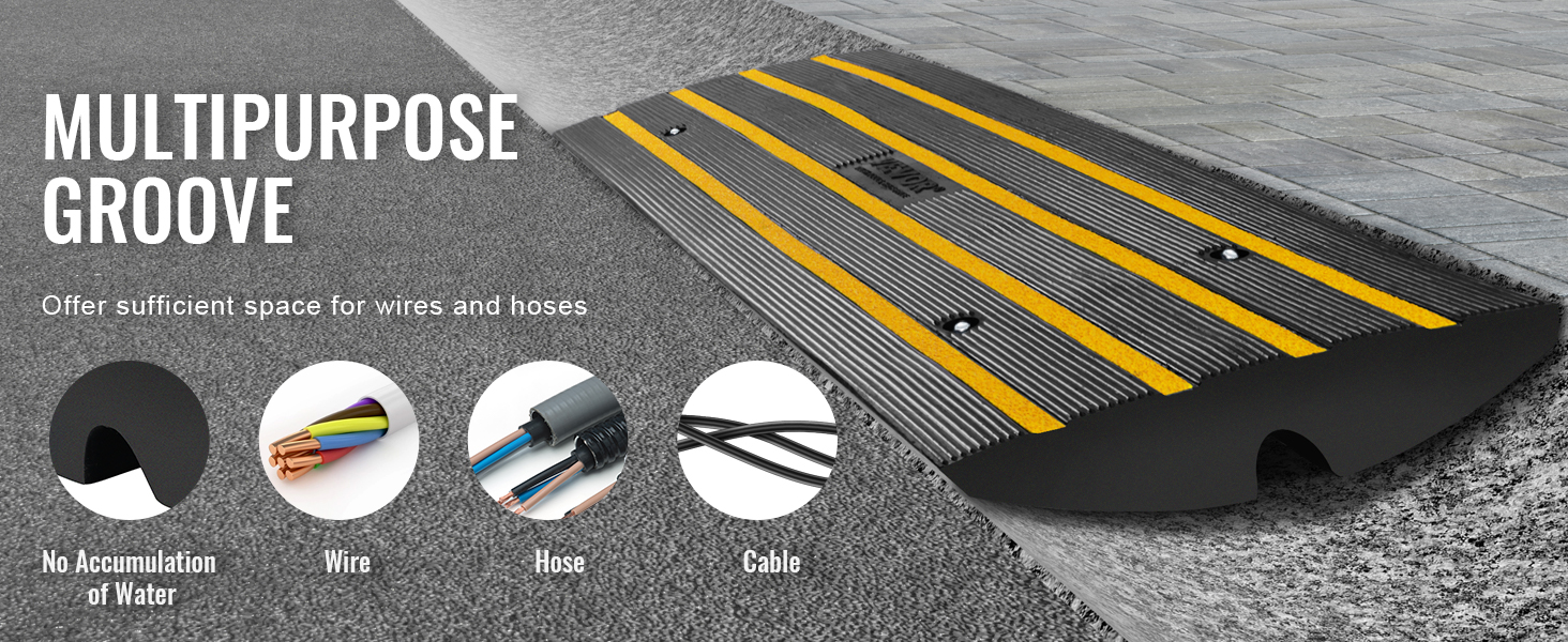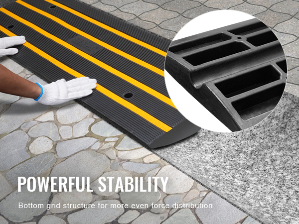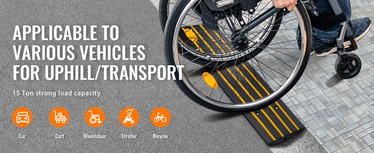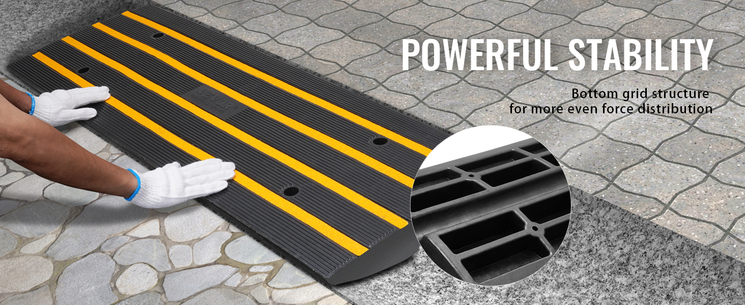 Ответ: Размер бордюрного ската подъездной дороги VEVOR составляет 48,1 "Д x 16 "Ш x 2,6" В, что подходит для обычных канавок, которые нелегко повредить шасси и шины автомобиля. Благодаря повышенной грузоподъемности в 15 тонн тяжелые транспортные средства могут легко проезжать по нему.