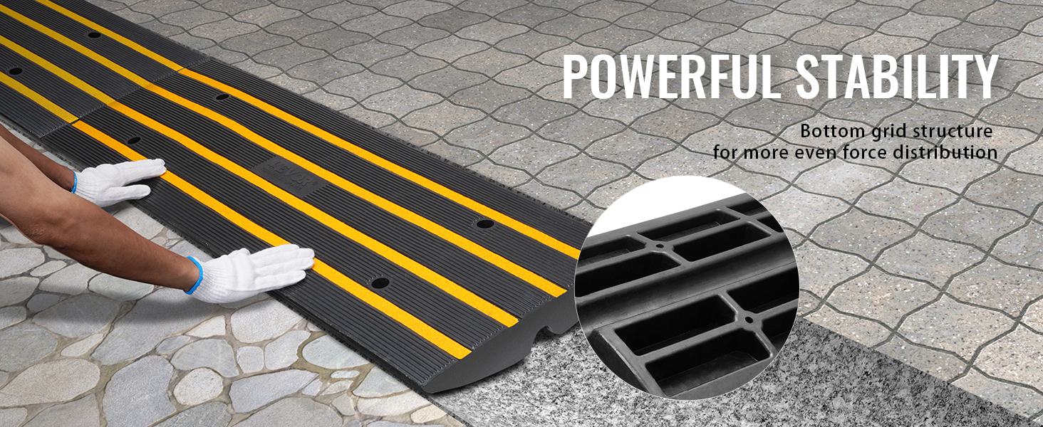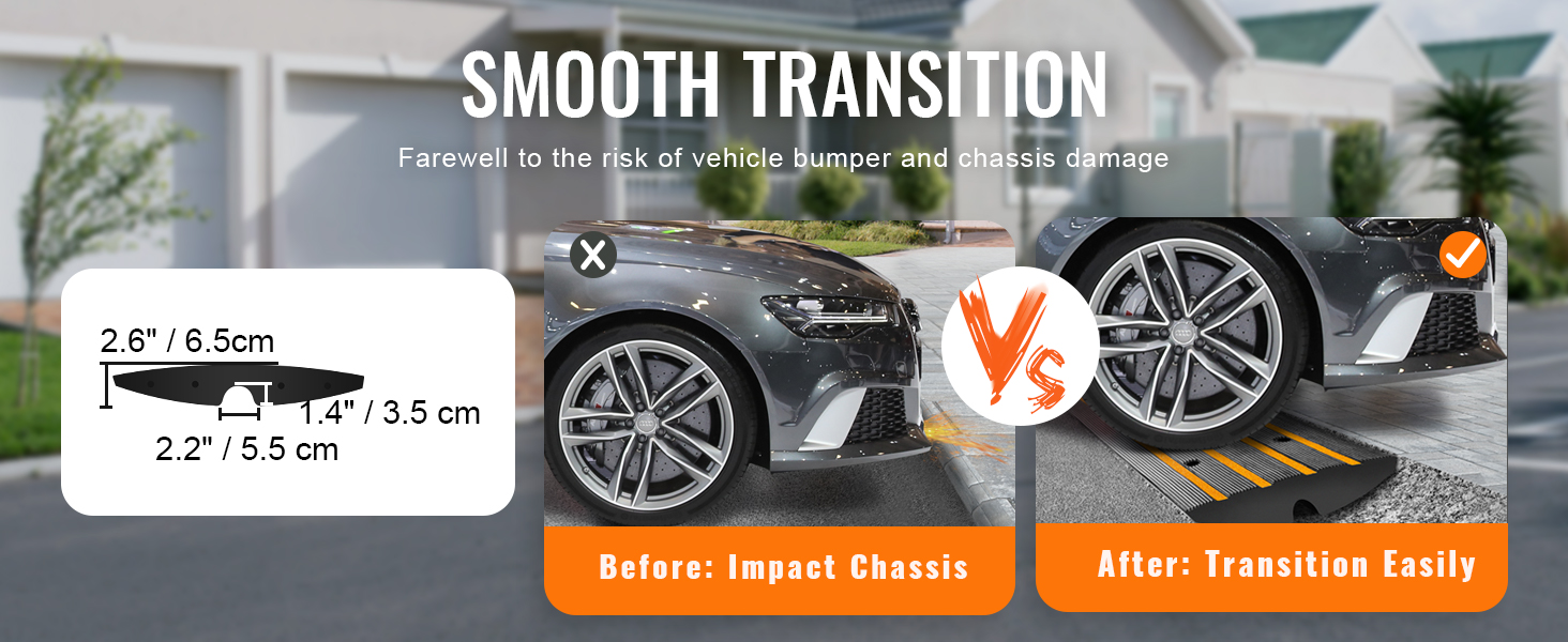 Этот бордюрный скат легко устанавливается в дорожные канавки, позволяя вашему автомобилю плавно проезжать по ухабистым участкам дороги и избегая повреждения днища автомобиля или шин из-за канавок или пандусов.