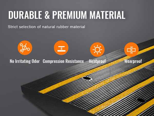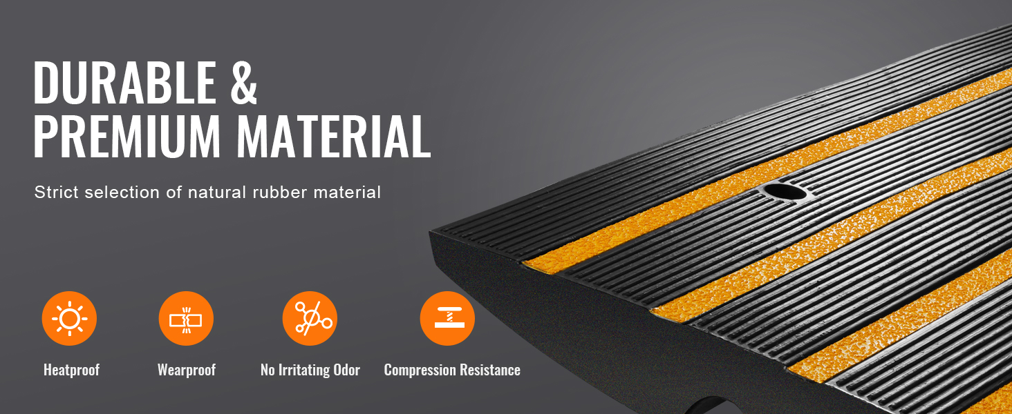 Он изготовлен из высококачественного твердого материала из натурального каучука, который обладает высокой прочностью на сжатие, нелегко деформируется и может перевозить до 15 тонн тяжелых транспортных средств в гору. На ваш выбор есть несколько размеров, подходящих для парковки, подъезда, супермаркета, обочины дороги и других мест.