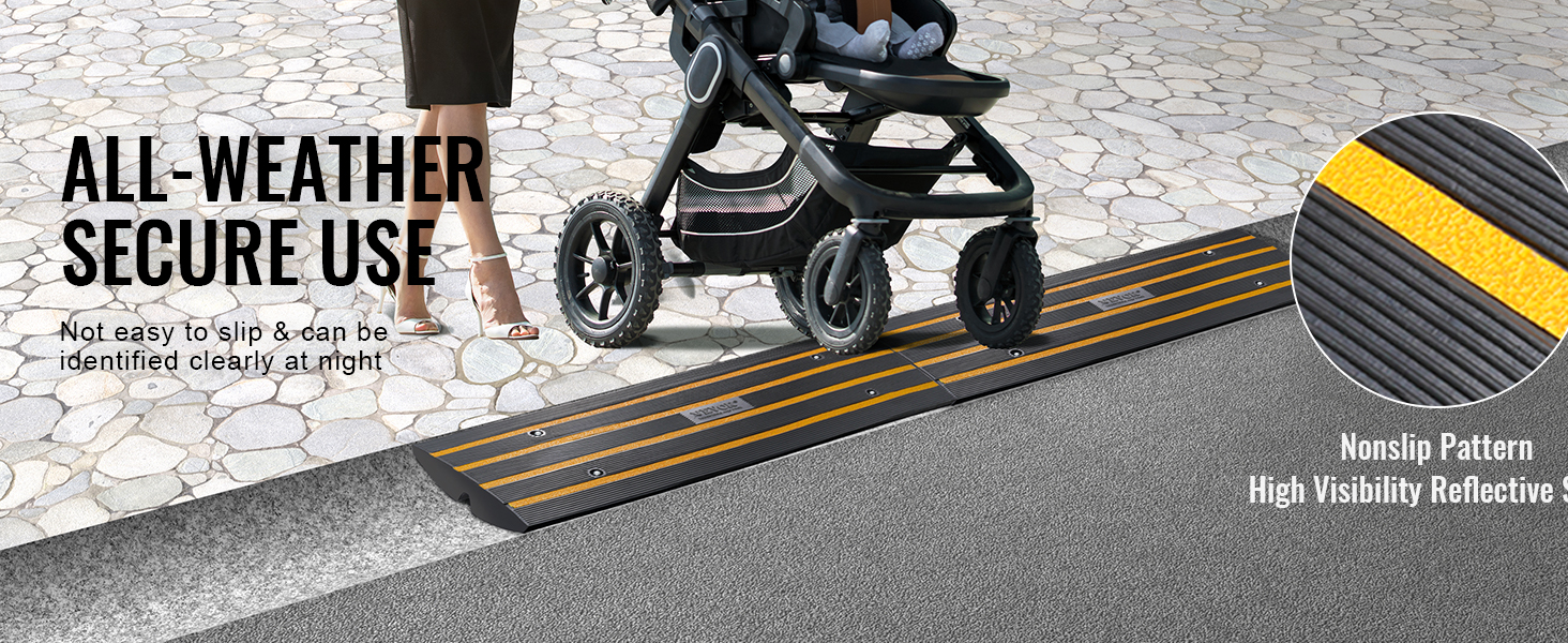 VEVOR Curb Ramp Rubber Driveway Ramp 3 Pack 2.6" Rise 15T Load Threshold Ramp