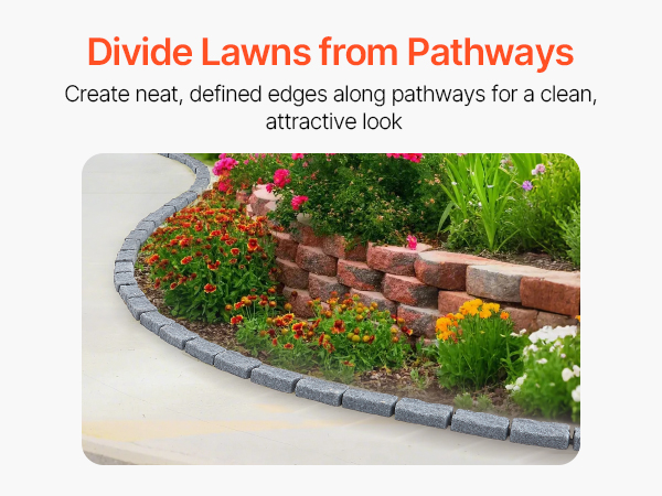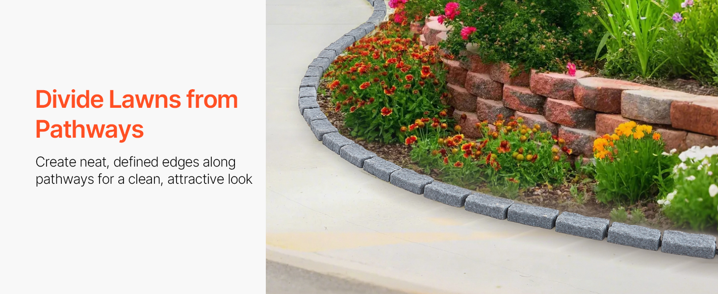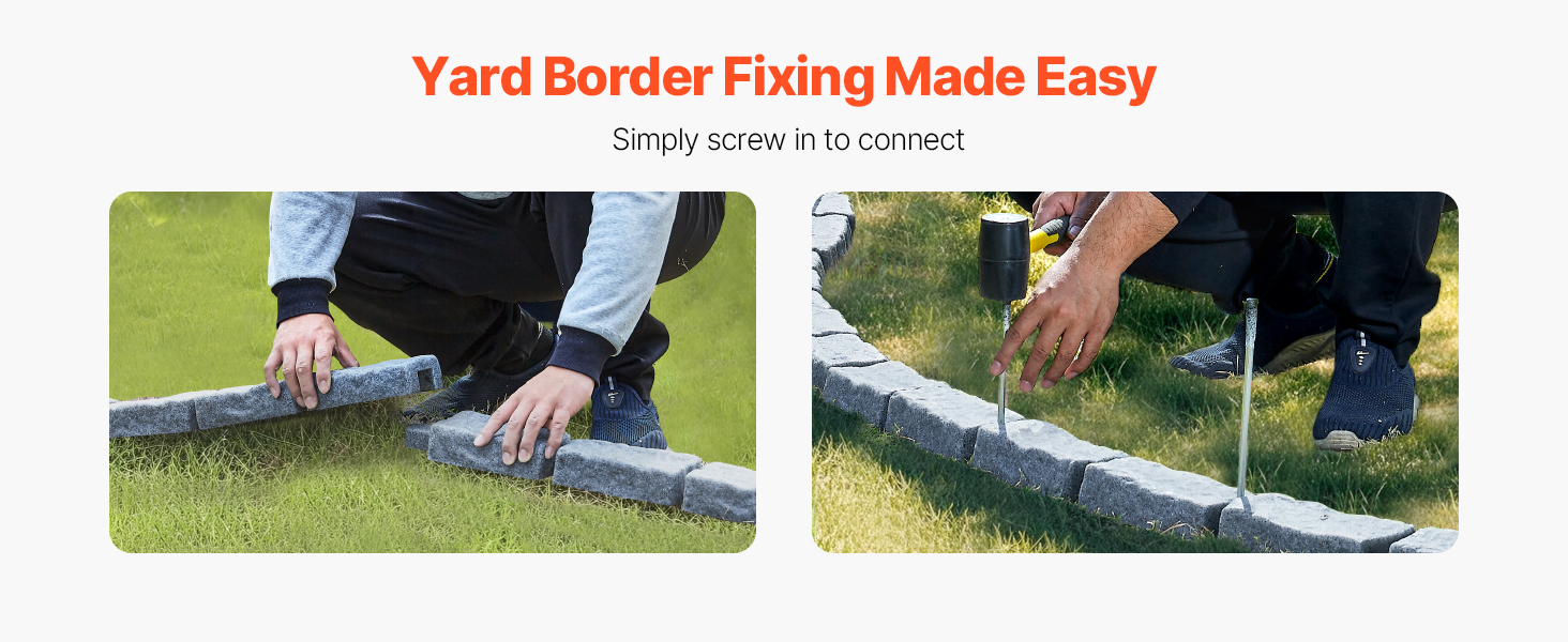 VEVOR Faux Stone Landscape Edging, 46.4 x 2.2 in Realistic Lawn Edging, Flexible Brick-Sized Garden Edging Border with Anchoring Spikes, Fade-Resistant Yard Edging for Driveways Walkway Grey