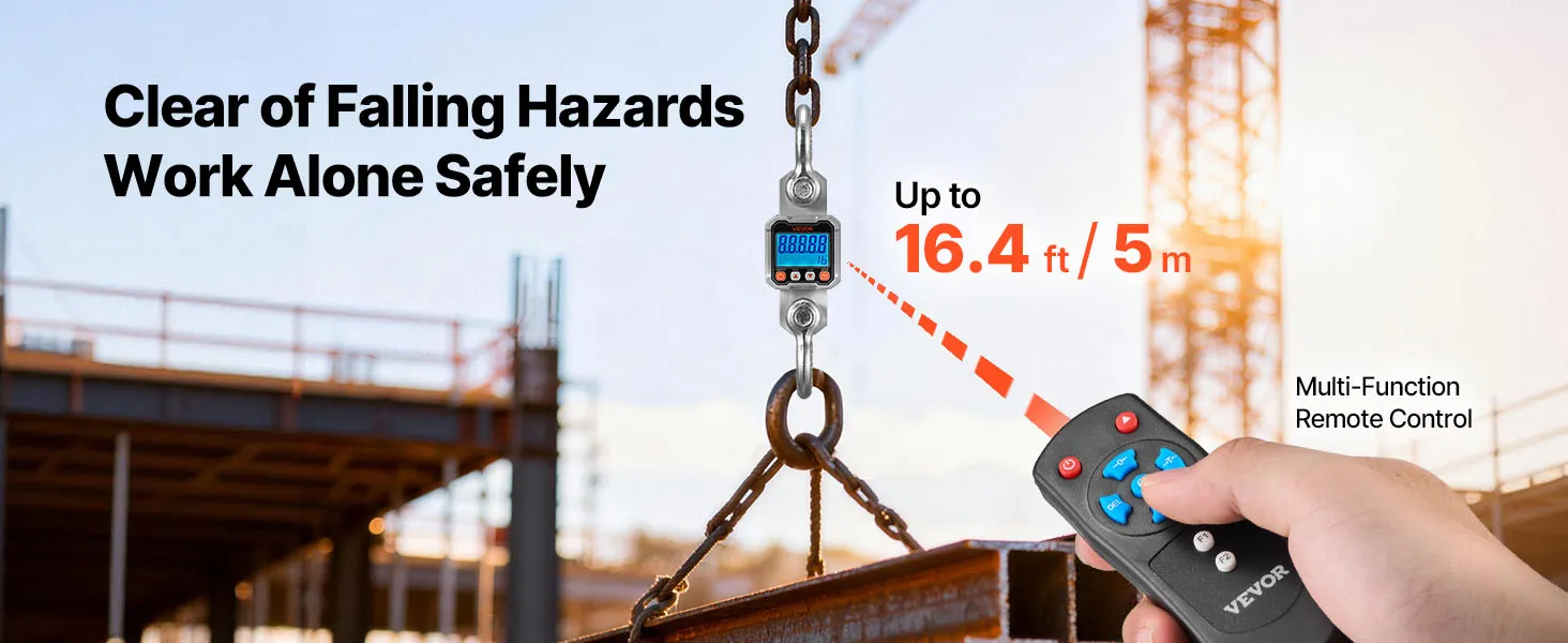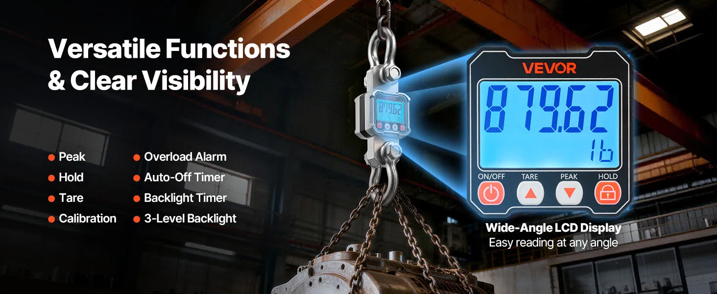This crane scale pairs high capacity with crisp resolution. A responsive sensor reads fine 1 lb/500 g increments, so you track tiny changes and heavy loads with equal confidence.