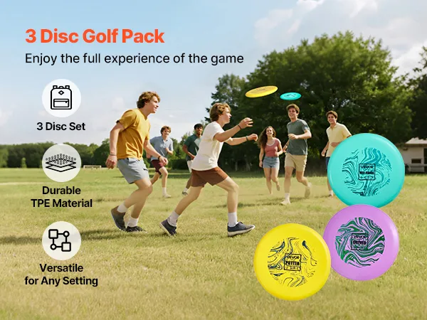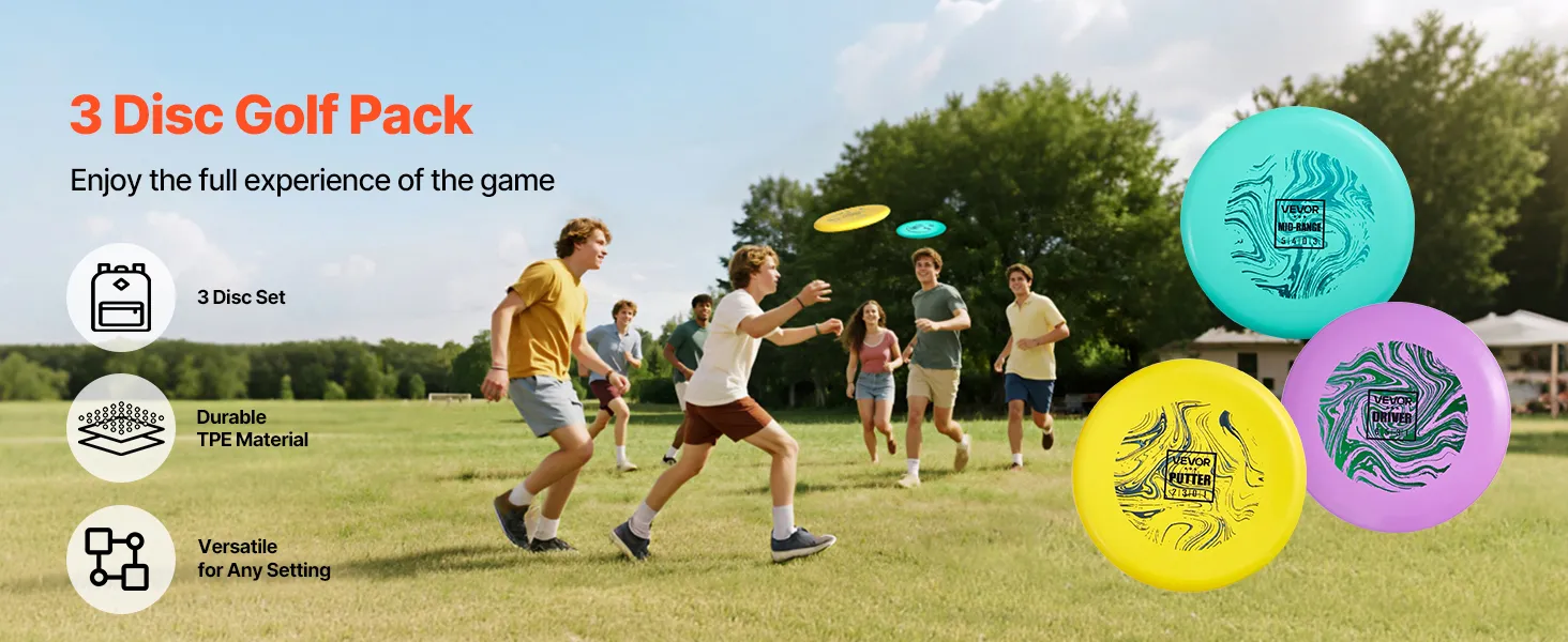 VEVOR Disc Golf Set, 3 Pack Disc Golf Starter Set, Beginners Flying Discs for Full-Body Strength Training, with Putter, Mid-Range, Driver, PDGA Approved, for Outdoor Backyard, Lawn, Beach, and Park