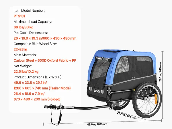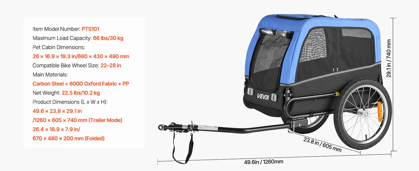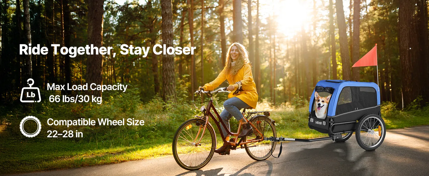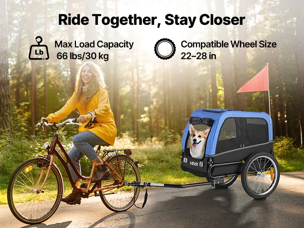 VEVOR Dog Bike Trailer, Supports up to 30 kg, Pet Cart Bicycle Carrier for Small & Medium Dogs, Easy Folding Frame with Quick Release Wheel, Universal Bicycle Coupler, Reflector, Flag, Internal Leash