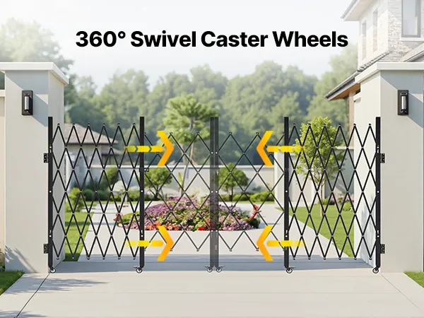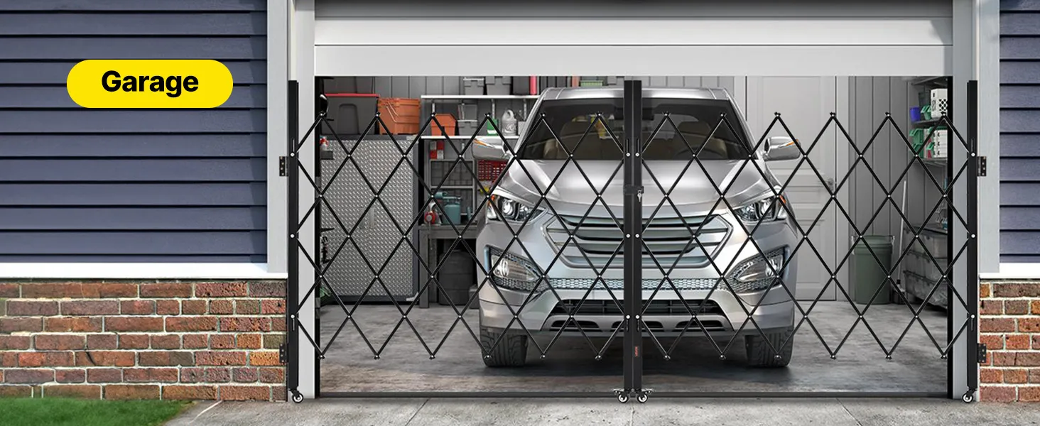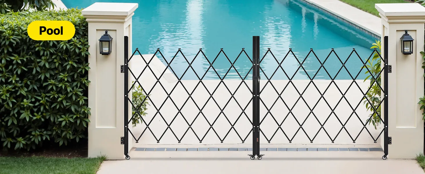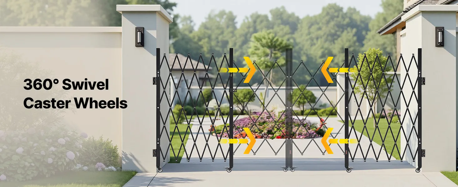 VEVOR Double Folding Security Gate, Lockable Scissor Gate with 360° Swivel Casters, Outdoor Barricade Steel Retractable Gates, for Entry Security, Garage, Warehouse & Pool, 320 × 160.5 cm (W × H)