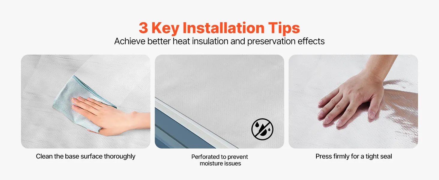 To maximize thermal insulation effectiveness, follow 3 installation tips: maintain a clean and dry base surface, avoid water exposure for at least one day after application, and press firmly for a tight seal and optimal insulation performance.