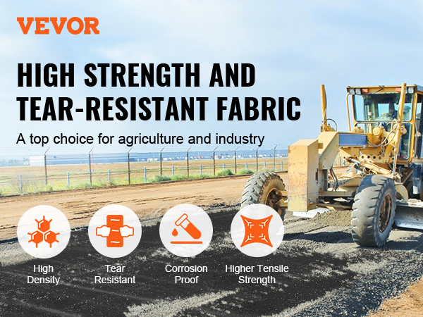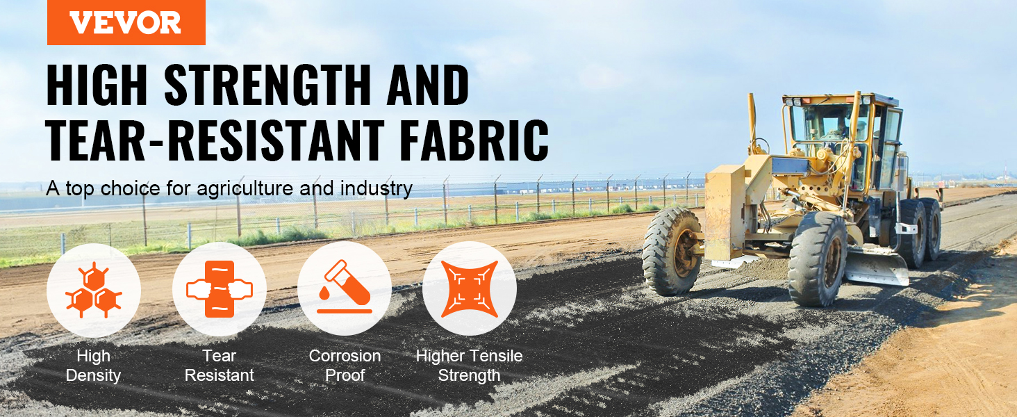 Попрощайтесь с упрямыми сорняками! Ландшафтная ткань VEVOR 3,28x164 фута, 4,43 унции высокой плотности для защиты от сорняков отличается исключительной проницаемостью и воздухопроницаемостью, а также устойчивостью к разрыву, коррозии и эрозии. Он улучшает здоровье почвы, контролируя рост сорняков и надежно защищая сад.