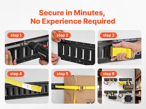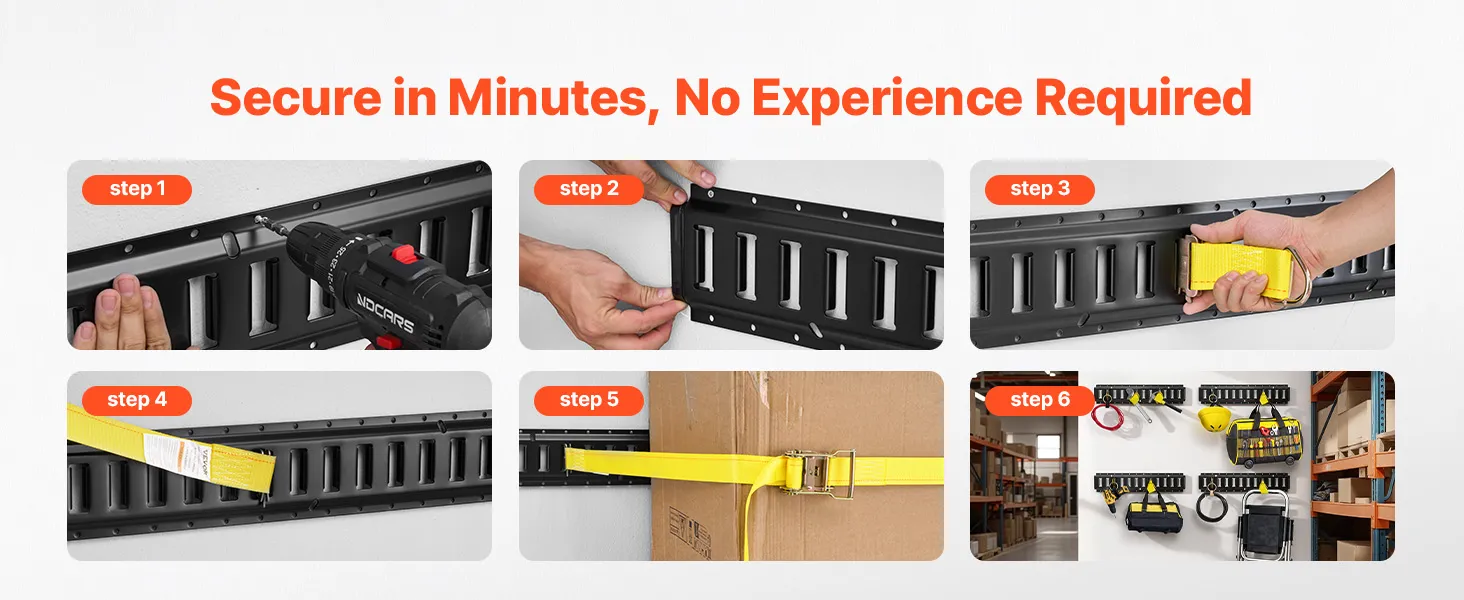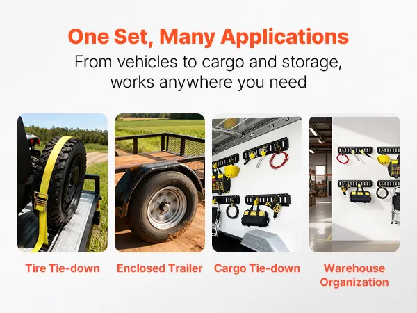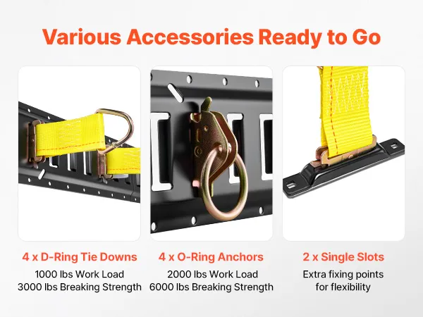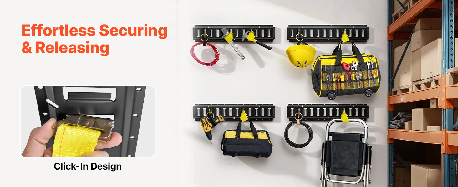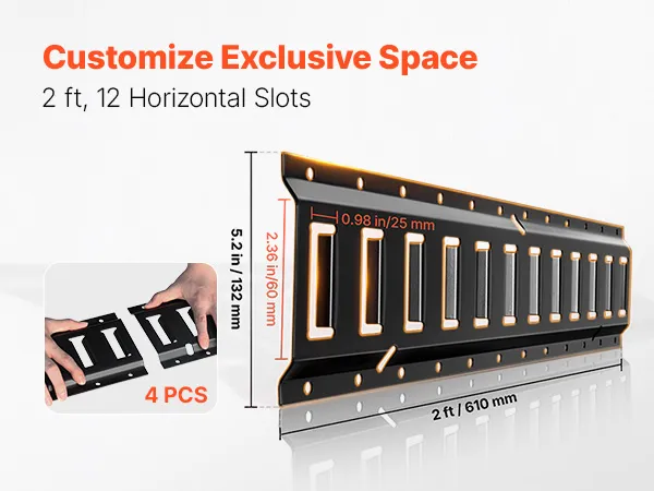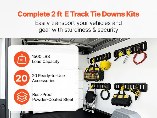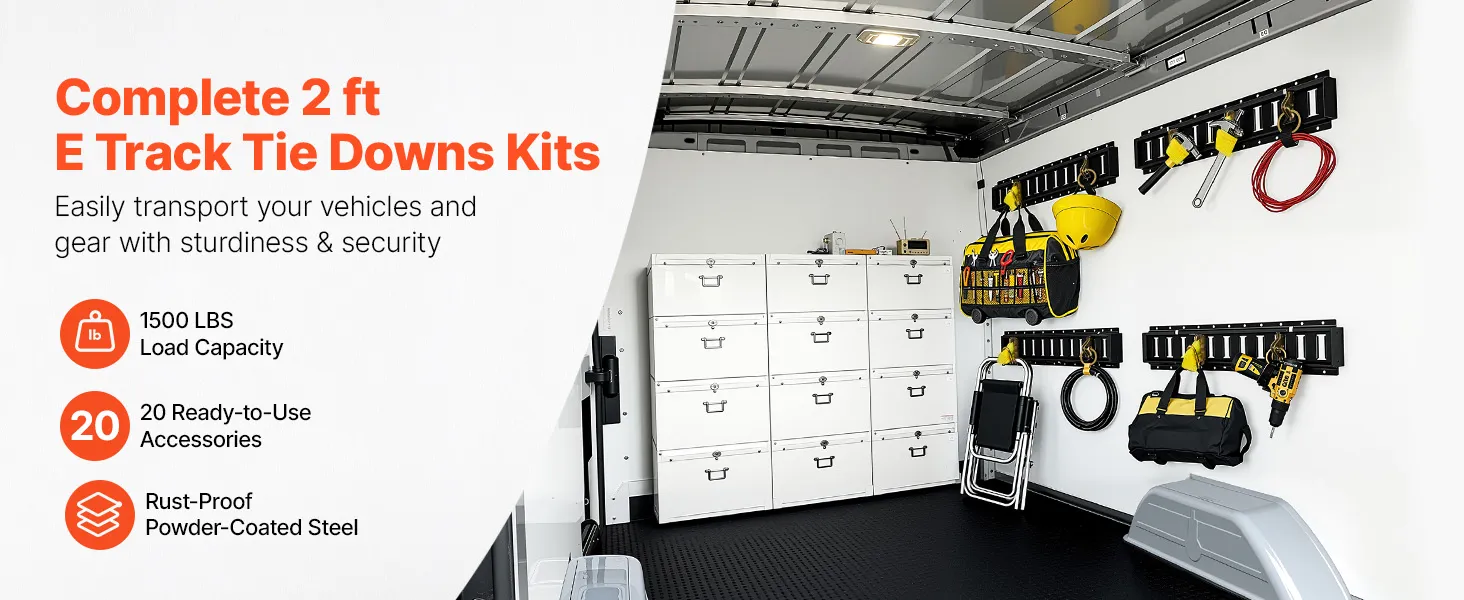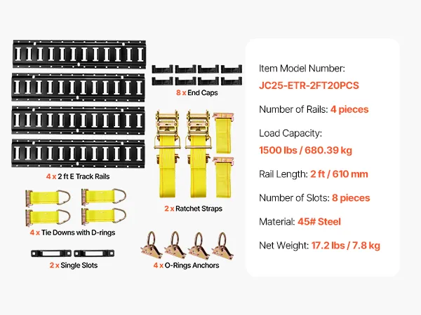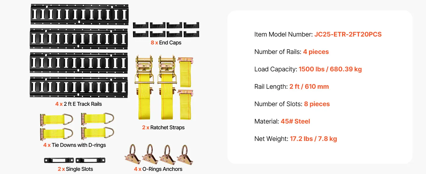 VEVOR E-Track Tie-Down Rail Kit, 4 Pack 0.6 m E Track Rails, 20 Pcs Includes 2 Ratchet Straps & 4 O-Rings & 4 Tie-Offs with D-Ring & 2 Single Slots & 8 End Caps, Fit for Garages Vans Trailers
