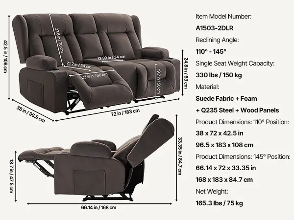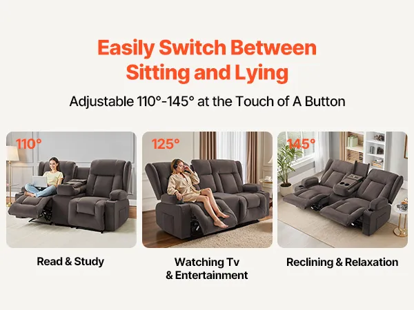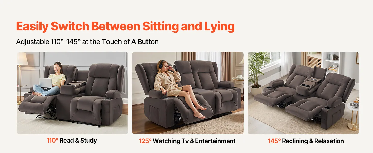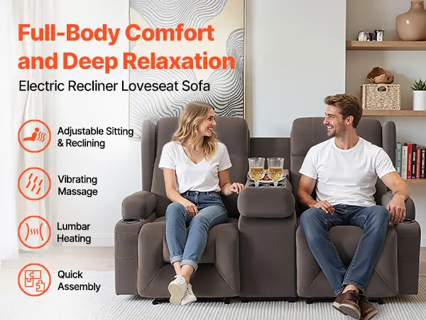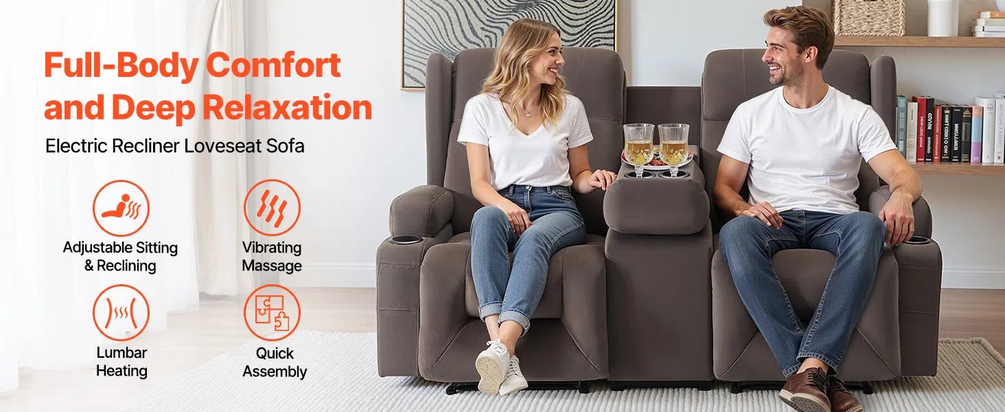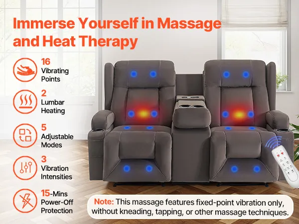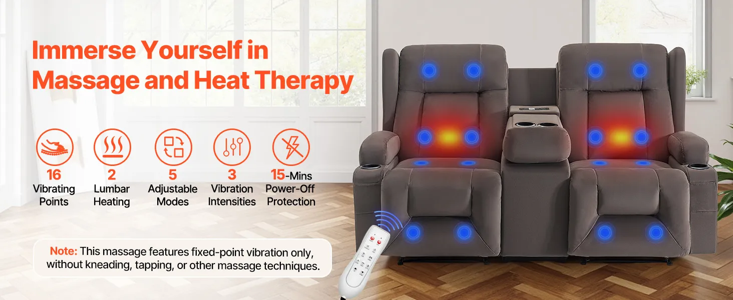 Step into your home and fully relax with this loveseat recliner sofa! Press the button to easily adjust to your most comfortable reclining position. Choose the ideal vibration mode for a full-body massage, and the lumbar heating function will further promote blood circulation, helping you achieve total comfort and deeper relaxation.