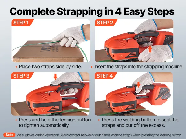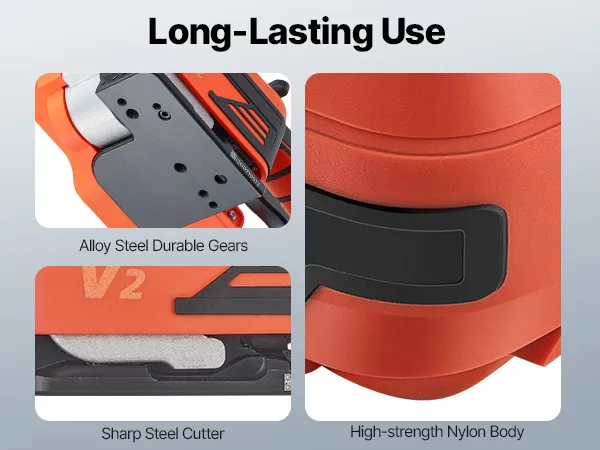 • Simple & Durable: Just overlap straps, tighten, weld, and cut—done! Even beginners strap like pros. The high-strength nylon body of the banding tensioner machine with steel gears and cutter ensures long-lasting strength for factory or warehouse use