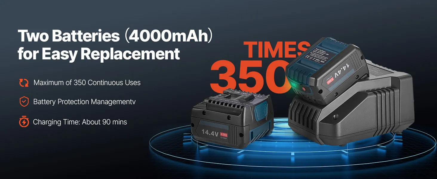 • Long-lasting Power: Our electric banding tool includes two 4000mAh batteries, giving you 300–350 straps per charge. Each battery charges in just 90 mins. The hollow cup motor stays cool for stable, nonstop strapping