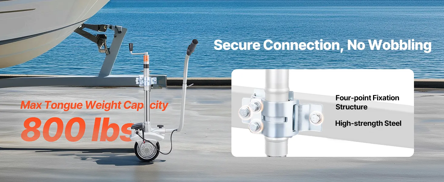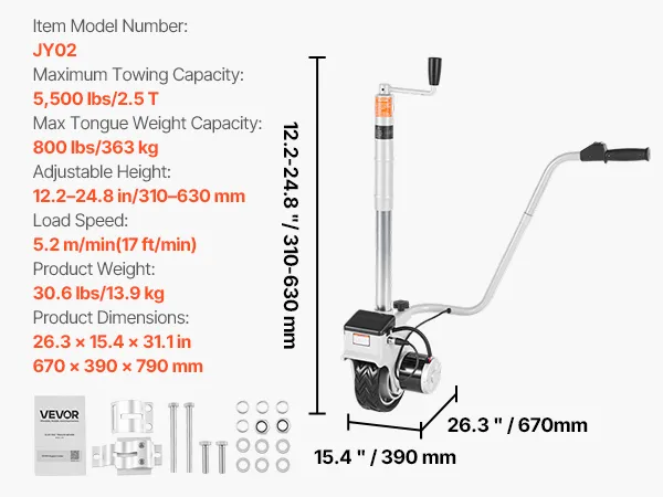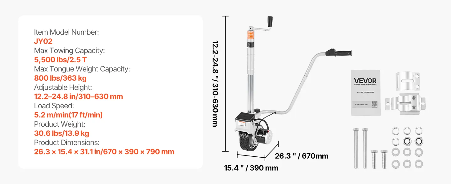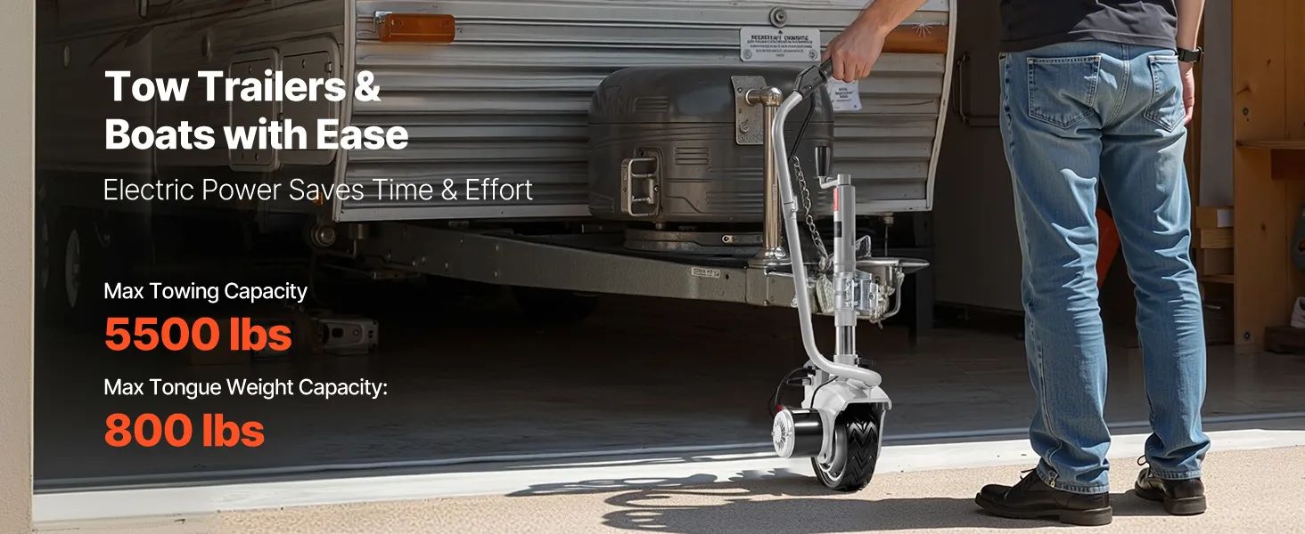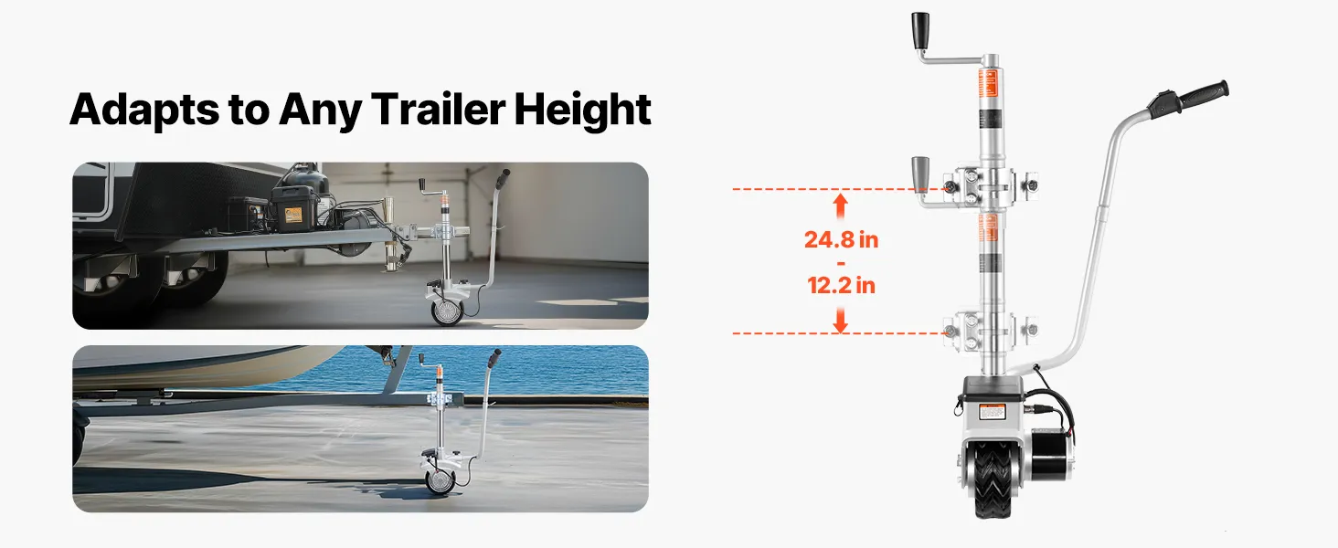 VEVOR Electric Trailer Dolly, 2.5 T Towing Capacity, 380W 12V Motorized Jockey Wheel with 7 m/min Moving Speed, 31-63 cm Adjustable Clamp Height & 20.3 cm Rubber Tire, For Moving Caravan Boat