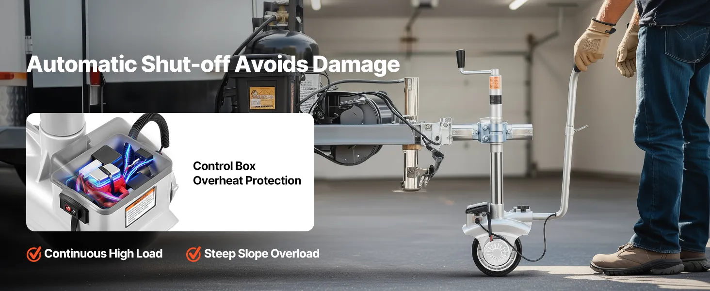 Our motorized trailer dolly easily hauls large trailers, RVs, and boats. This powerful electric assist makes heavy loads a breeze, saving you time and energy on every move. Say goodbye to hard work!