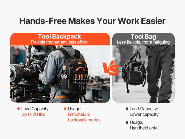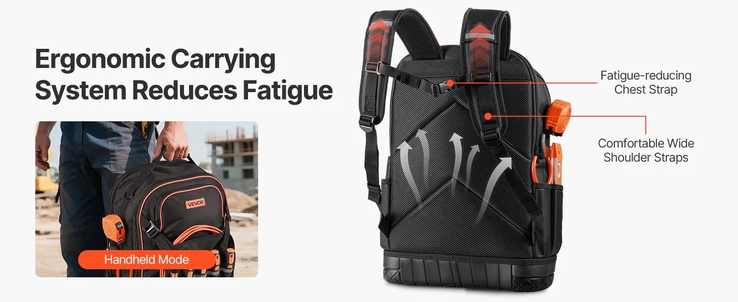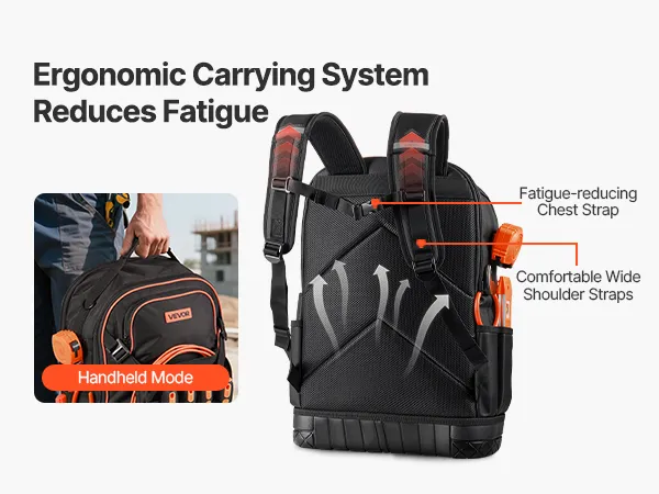 Этот сверхпрочный рюкзак для инструментов вмещает до 70 фунтов и поддерживает режимы ручной переноски и ношения в рюкзаке. Удобная система переноски позволяет вашим рукам оставаться свободными, поэтому вы можете свободно передвигаться со всеми своими инструментами.