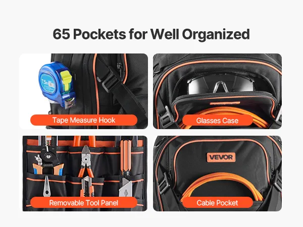 Heavy-Duty Tool Backpack: 65 Pockets for Maximum Storage