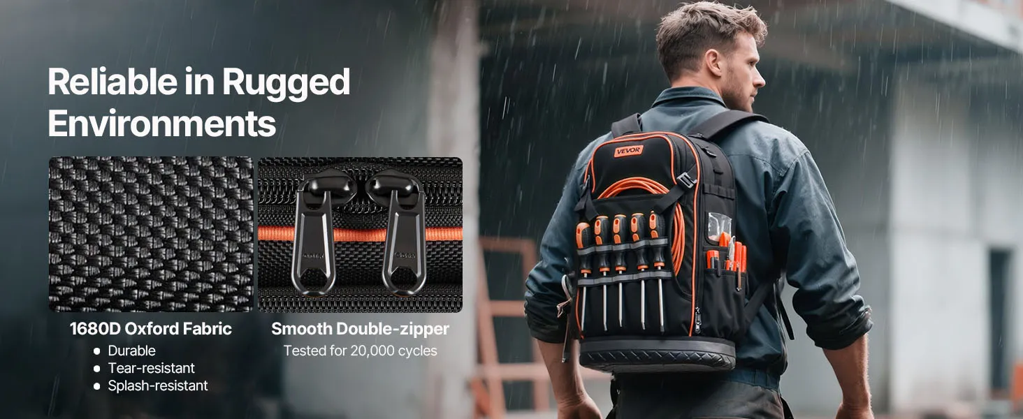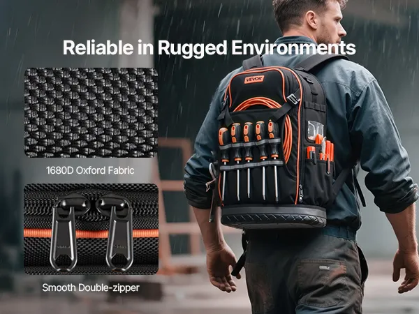Изготовленный из прочной ткани Оксфорд 1680D, этот рюкзак для электрика на стройплощадке устойчив к разрывам и износу. Двойная застежка-молния была протестирована более 20 000 раз, а основание из ПВХ обеспечивает устойчивость, поэтому ваш рюкзак не опрокинется.