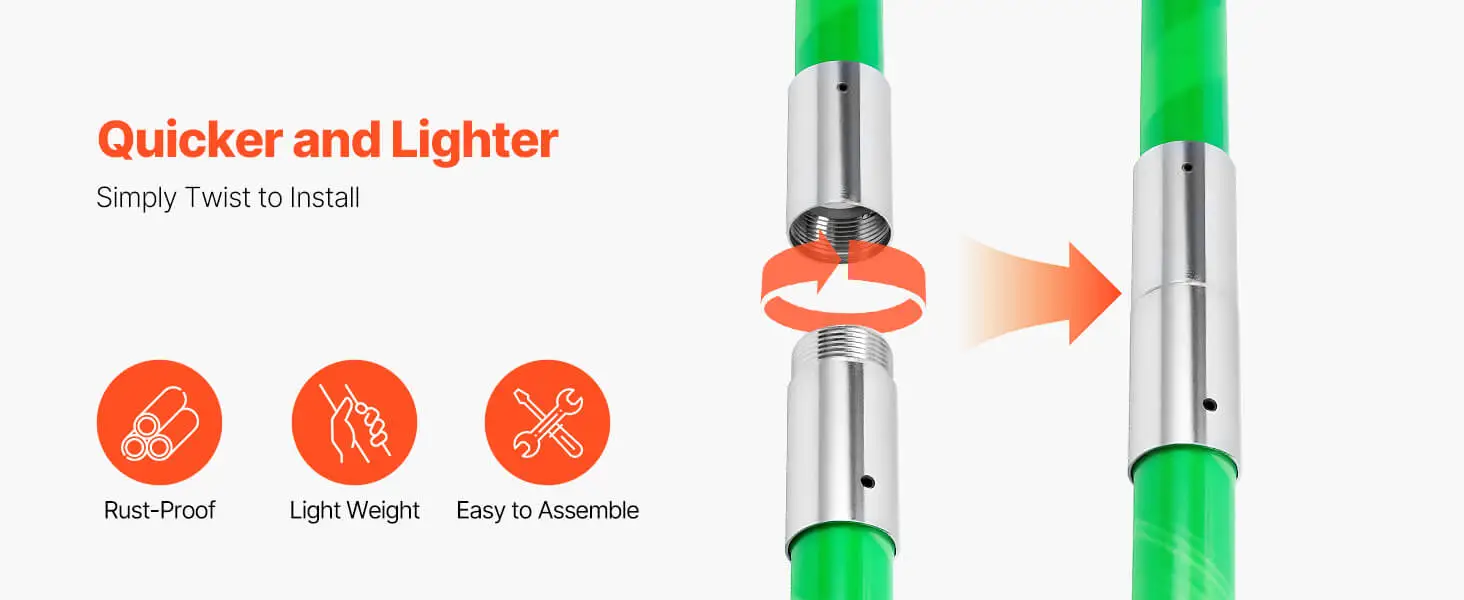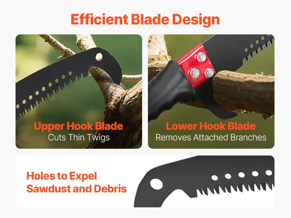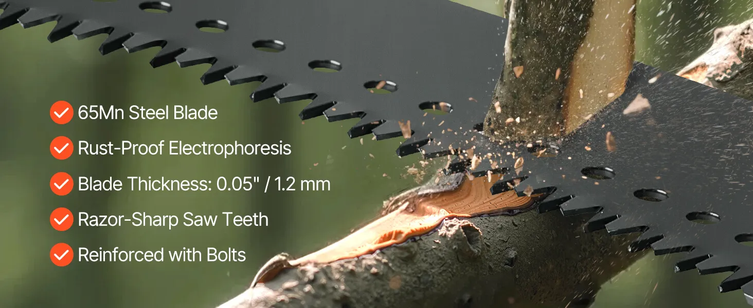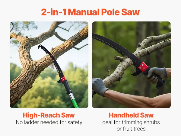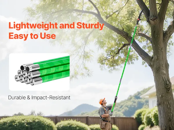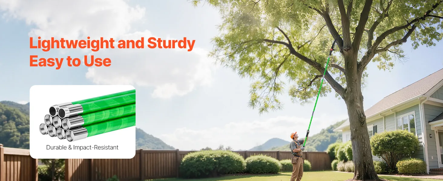 This pole tree pruner extends up to 27 ft, allowing you to easily trim high branches without the need for a ladder. Made with sturdy fiberglass poles and a 1.2mm thick saw blade, it's durable and sharp, easily handling both thick and thin branches. It is ideal for your yard, garden, or orchard.
