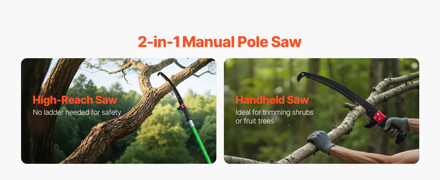 VEVOR Manual Pole Saw, 118-809.3 cm Extendable Pole Tree Pruner, Sharp 65Mn Steel Blade, Lightweight Fiberglass Handle Pole, Double-Hook Saw for High Branch Trimming, Pruning Tool for Palms, Shrubs
