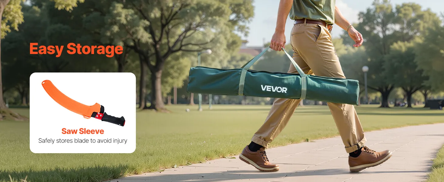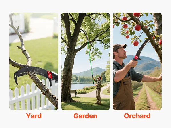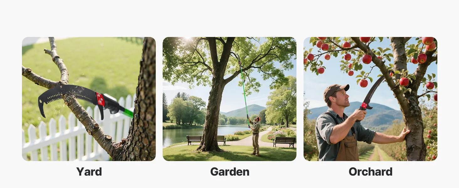 Q1: Can I trim high branches?A1: Yes, this manual pole saw can trim branches up to 27ft. For easy assembly, start with the first pole angled against the tree, then add additional sections.Q2: Is it comfortable to use for long periods?A2: Weighing only 13.45 lbs, this pole tree pruner reduces strain. For extended use, we recommend wearing back support.Q3: Can it cut thicker branches?A3: The dual-hook blade handles thicker branches.Q4: Is assembly and disassembly easy?A4: Assembly and disassembly are simple with a screw connection, and the included storage bag makes it easy to store.