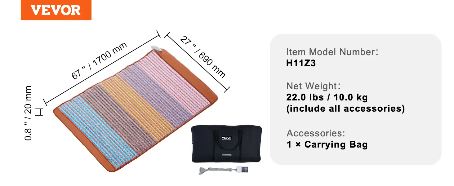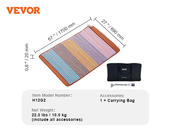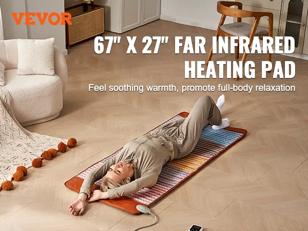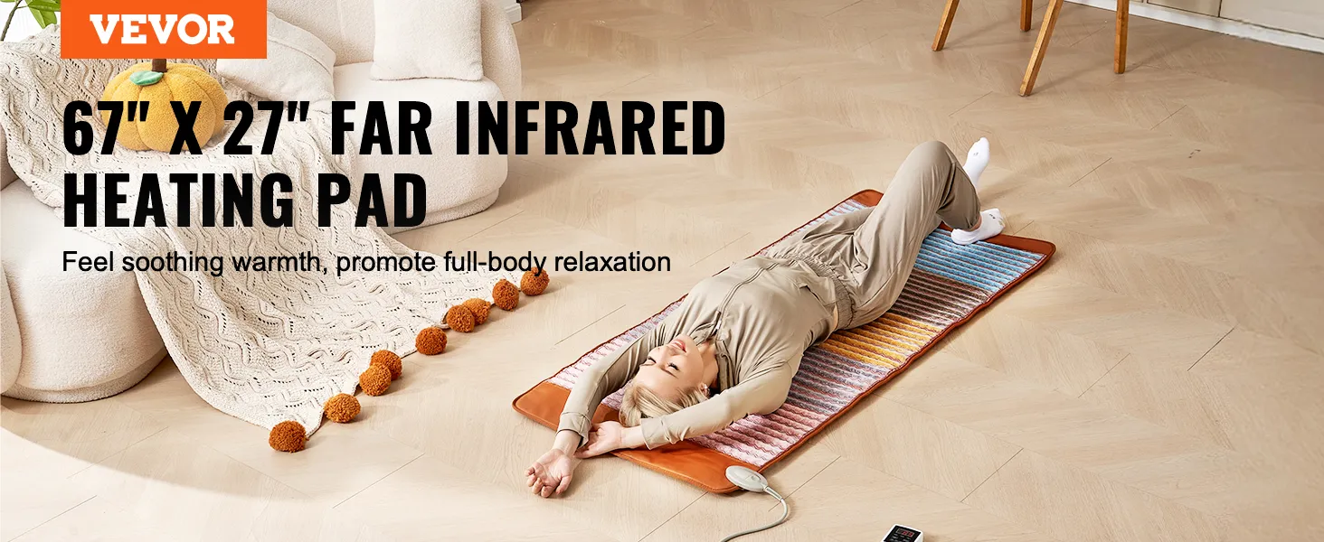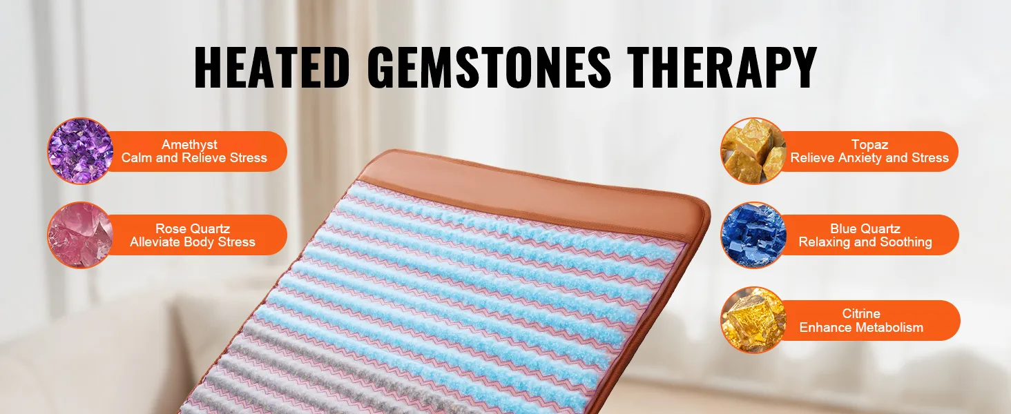 VEVOR Far Infrared Heating Pad, 5 Natural Crystal Gemstones Mat, Full-Body Amethyst Heating Pad with Negative Ions, 103-159℉ Heating, 0-720 Minute Timer for Back Waist Leg Pain Relief (67 x 27-inch)