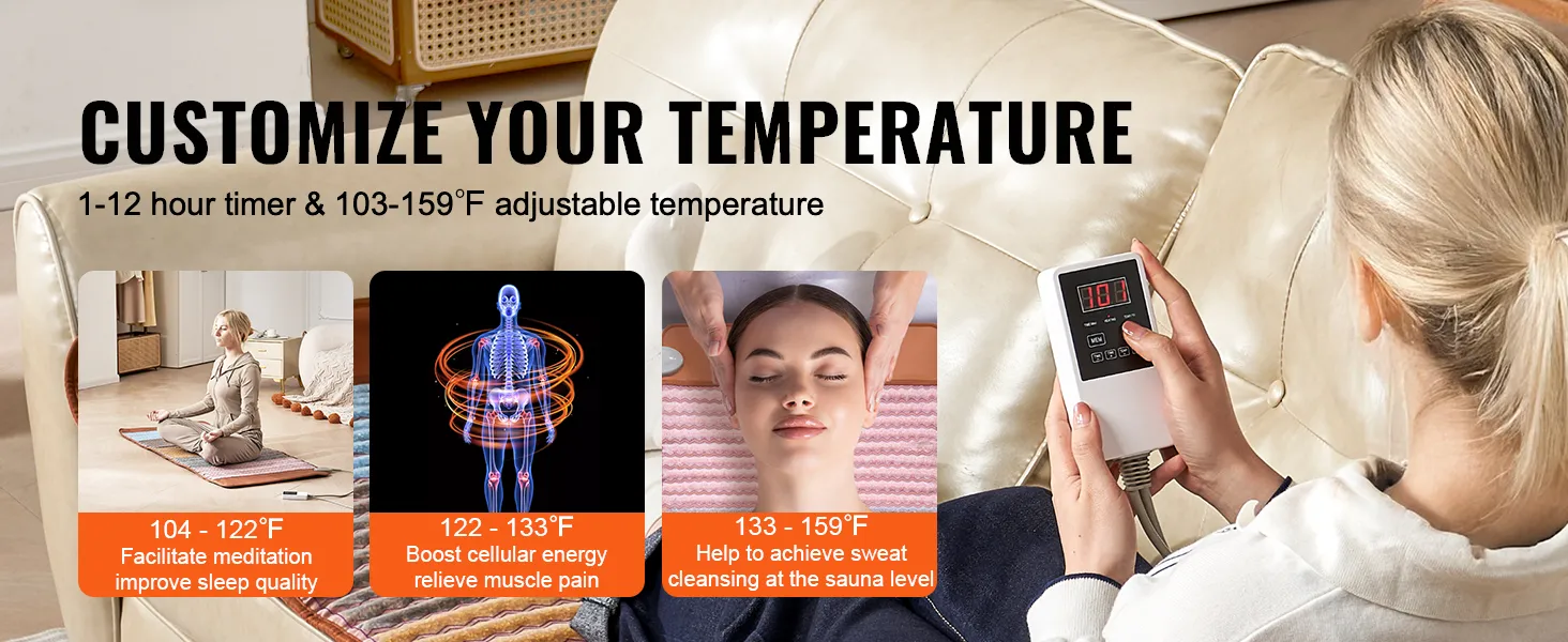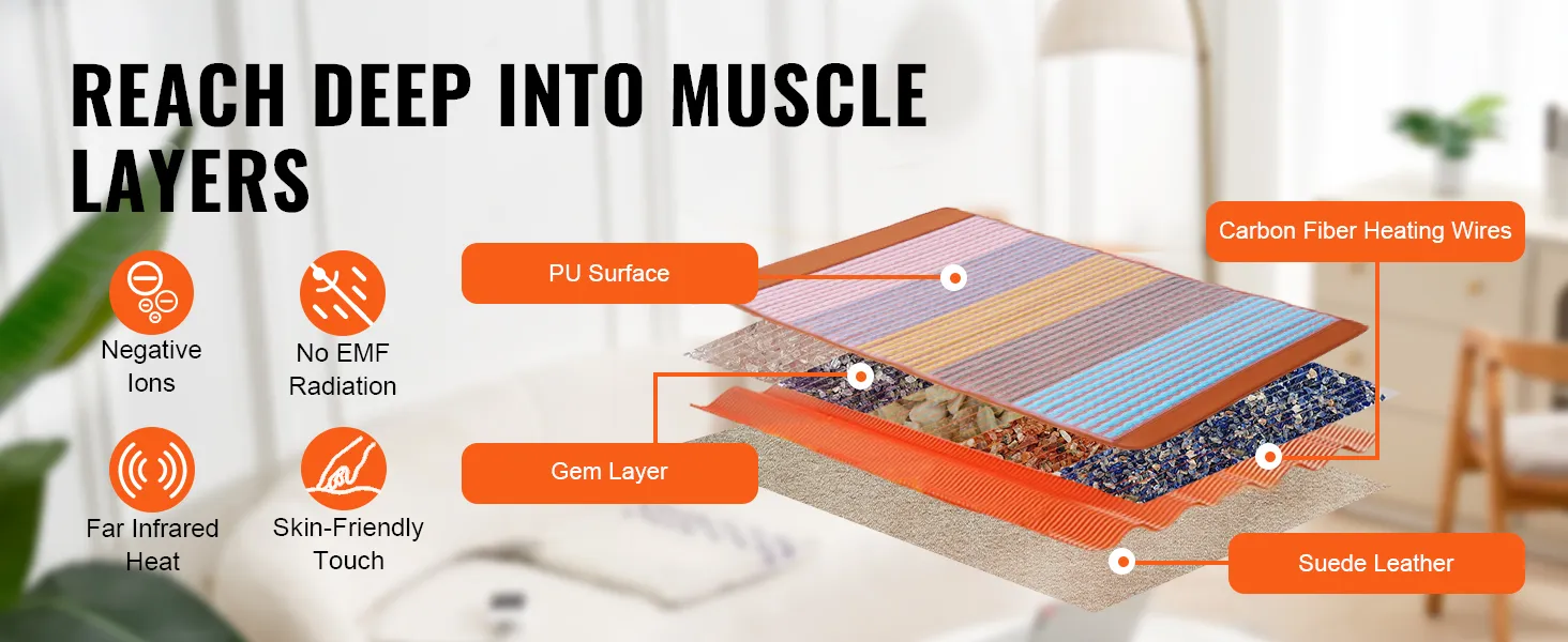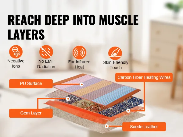 Наш коврик из натурального хрусталя с эффективным нагревательным элементом из углеродного волокна обеспечивает стабильную тепловую терапию. Он быстро нагревается, равномерно распределяя тепло по всему телу и способствуя полному расслаблению.