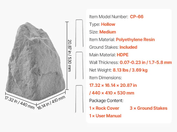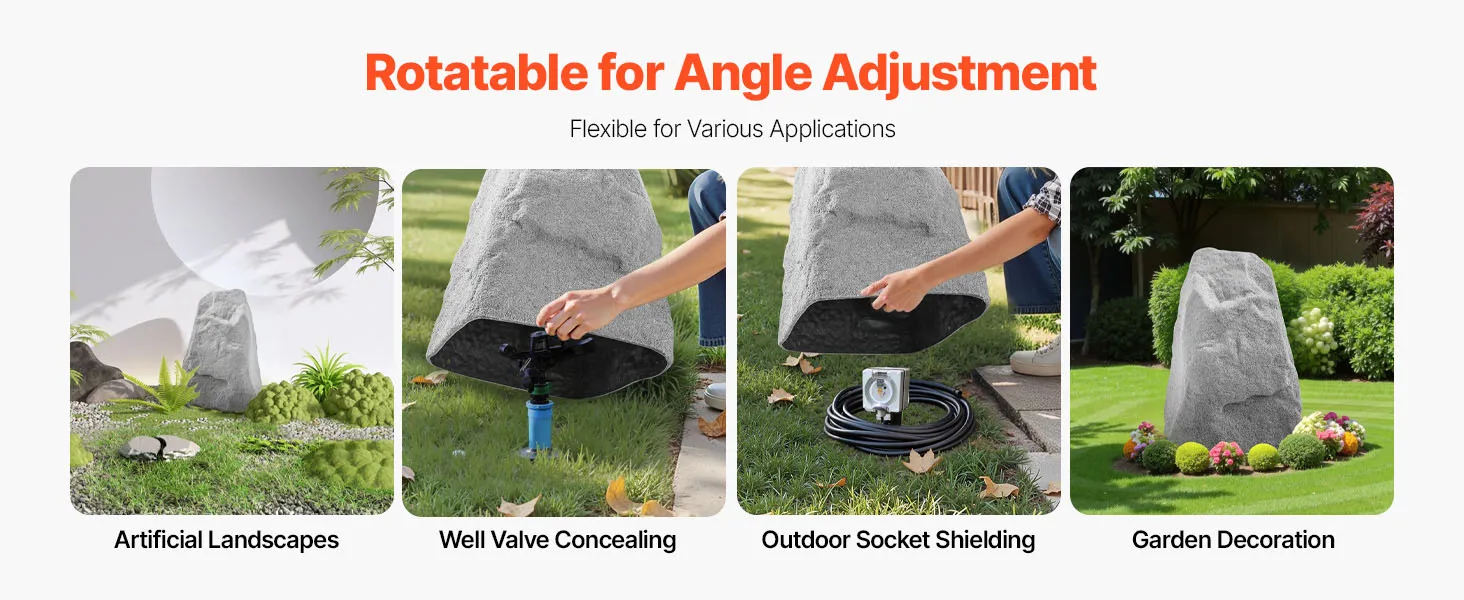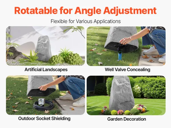 The angle can be flexibly rotated and adjusted according to your needs. This landscape rock cover is ideal for manhole lid concealing, small pumps, electrical boxes shielding, and garden decoration. Multi-purpose design make it practical and stylish.