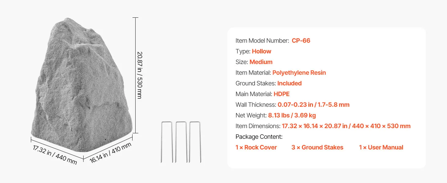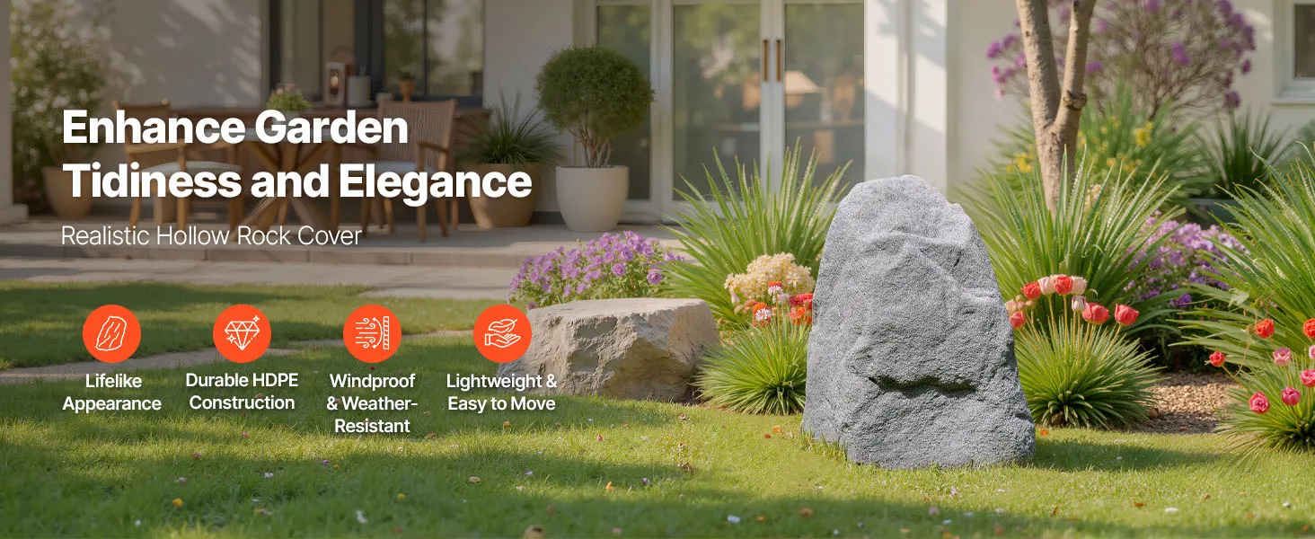Crafted from high-density HDPE, this rock cover is sun-resistant, fade-proof, and crack-resistant even in harsh winter conditions. Our faux rock cover maintains a neat appearance for long-term outdoor use—reliable and durable.