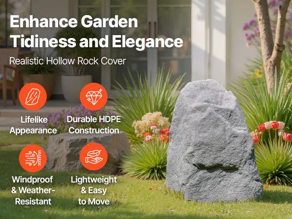 The faux rock exterior blends seamlessly into the natural conditions, easily concealing clutter like manhole covers and pipes. Our fake rock cover enhances garden neatness and visual appeal to create a great outdoor space.