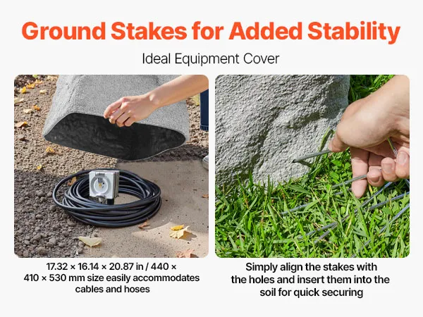 Included ground stakes ensure the facilities can be firmly covered, avoiding shifting even in windy weather. This landscape rock cover fits tightly against the ground to shield manholes, pipelines, and other facilities comprehensively.