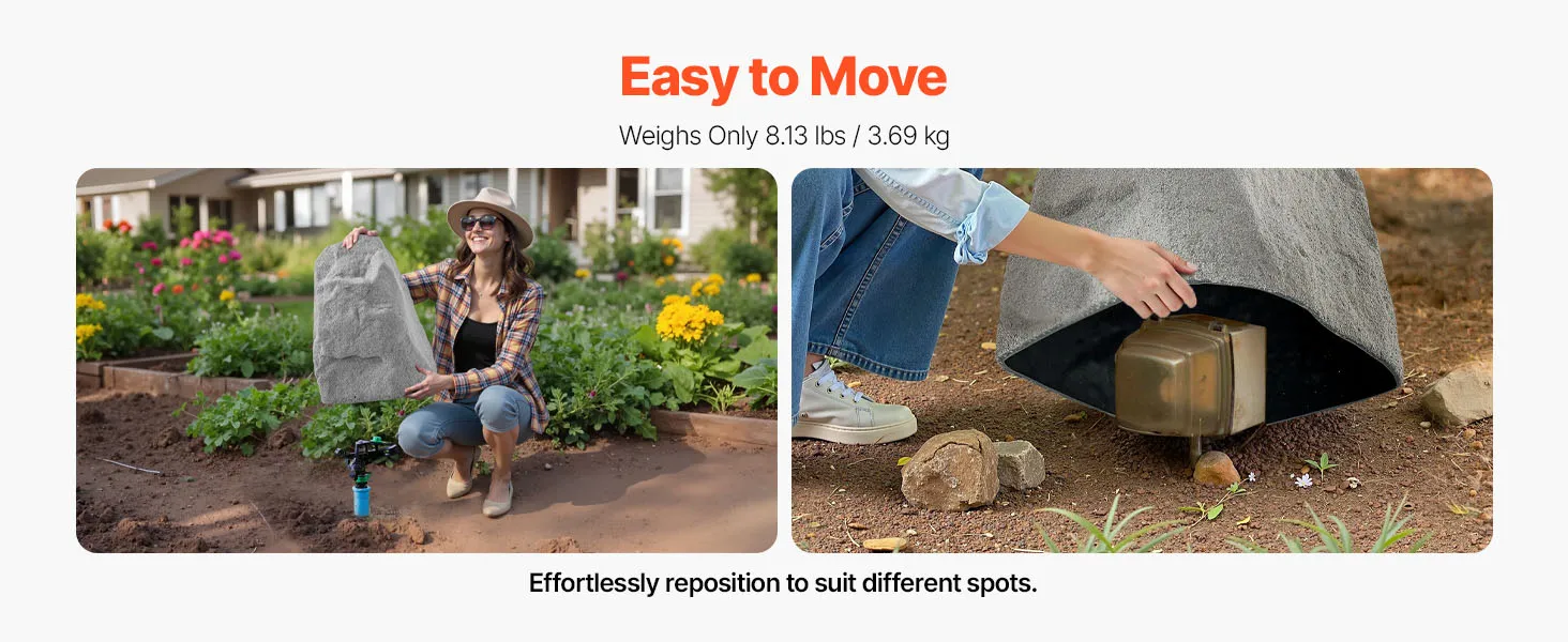 Crafted from lightweight polyethylene, this artificial rock covers is easy to lift and move by one person. Adjust its position freely according to seasonal or site needs for versatile placement.