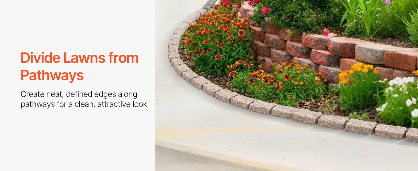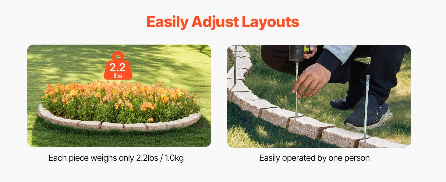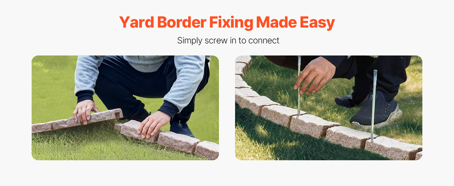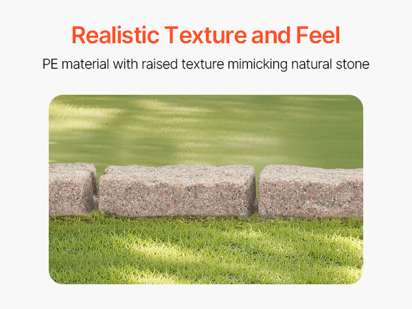 VEVOR Faux Stone Landscape Edging, 46.4 x 2.2 in Realistic Lawn Edging, Flexible Brick-Sized Garden Edging Border with Anchoring Spikes, Fade-Resistant Yard Edging for Driveways Walkway Brown